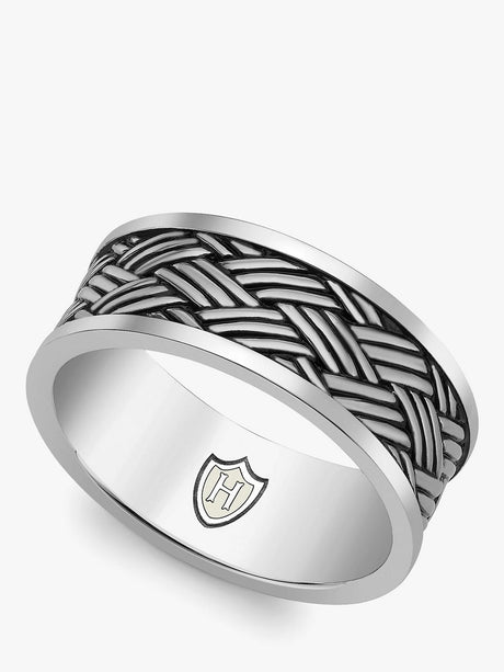 Hoxton London Men's Woven Pattern Oxidised Bar Link Bracelet Sterling Silver