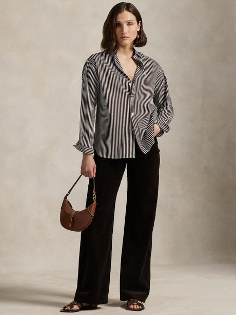 Ralph Lauren Womens Cotton Relaxed Fit Striped Shirt Brown/White - Size L