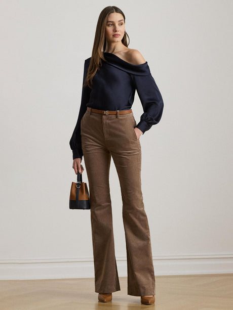 Ralph Lauren Zamiel Satin Charmeuse Navy Asymmetric One Shoulder Blouse - L
