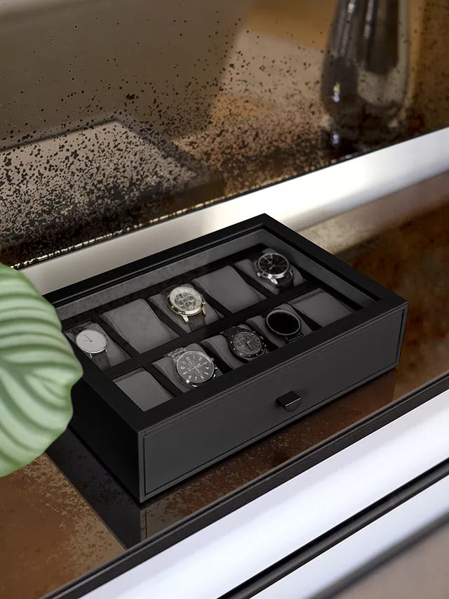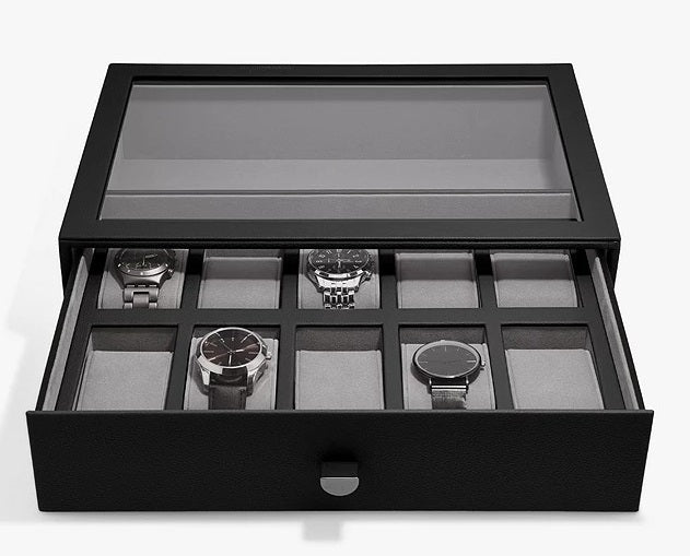 Stackers 10 Piece Watch Storage Drawer H9.5 x W36.5 x D25cm - Black
