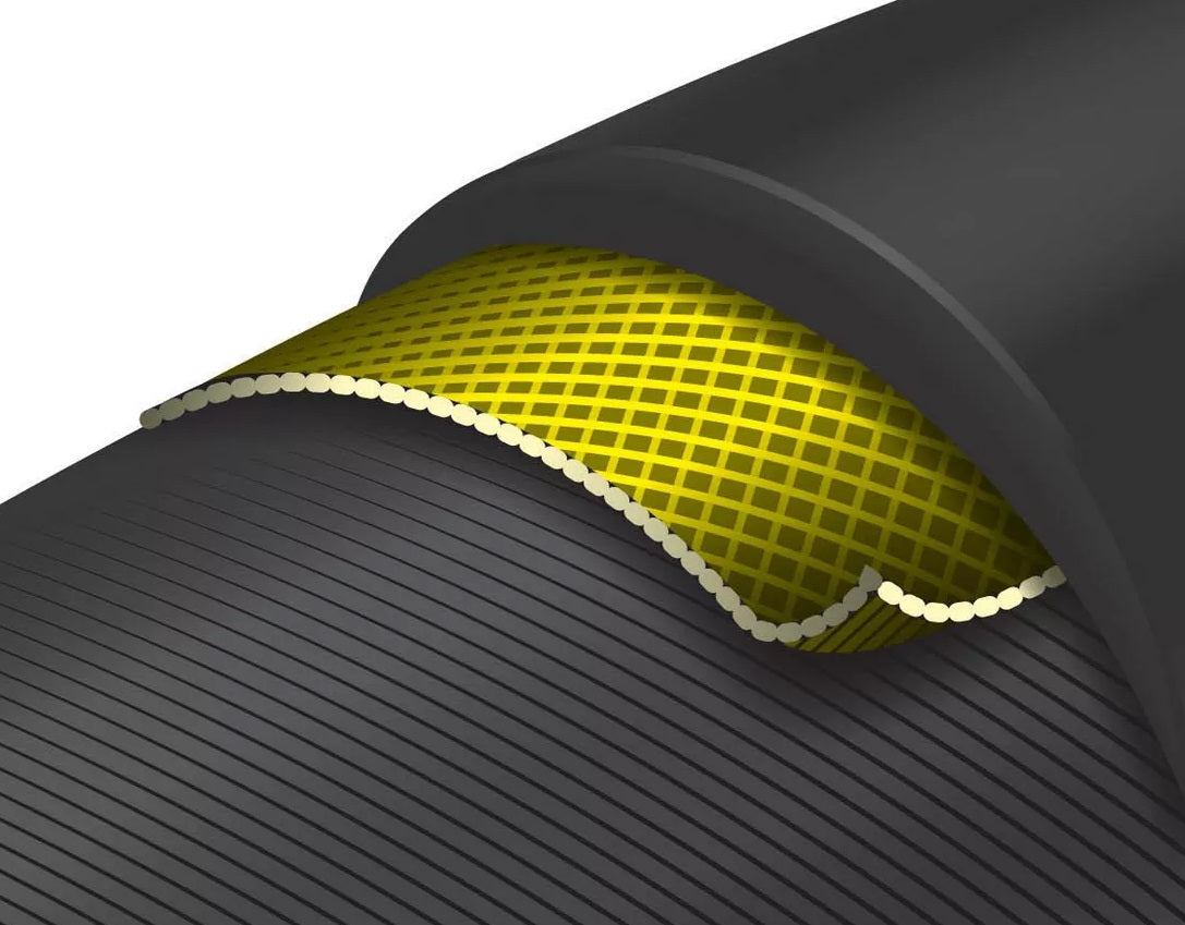 With PolyX Breaker car expertise comes to the bicycle tyre sector. Polyester has been used successfully for years in car tyres and has proved extremely effective. The extremely resistant polyester fibre is woven tightly crosswise. A very high fabric density is achieved which makes the breaker resistant not only to foreign bodies, but especially to punctures. The rolling resistance is not affected by this breaker.