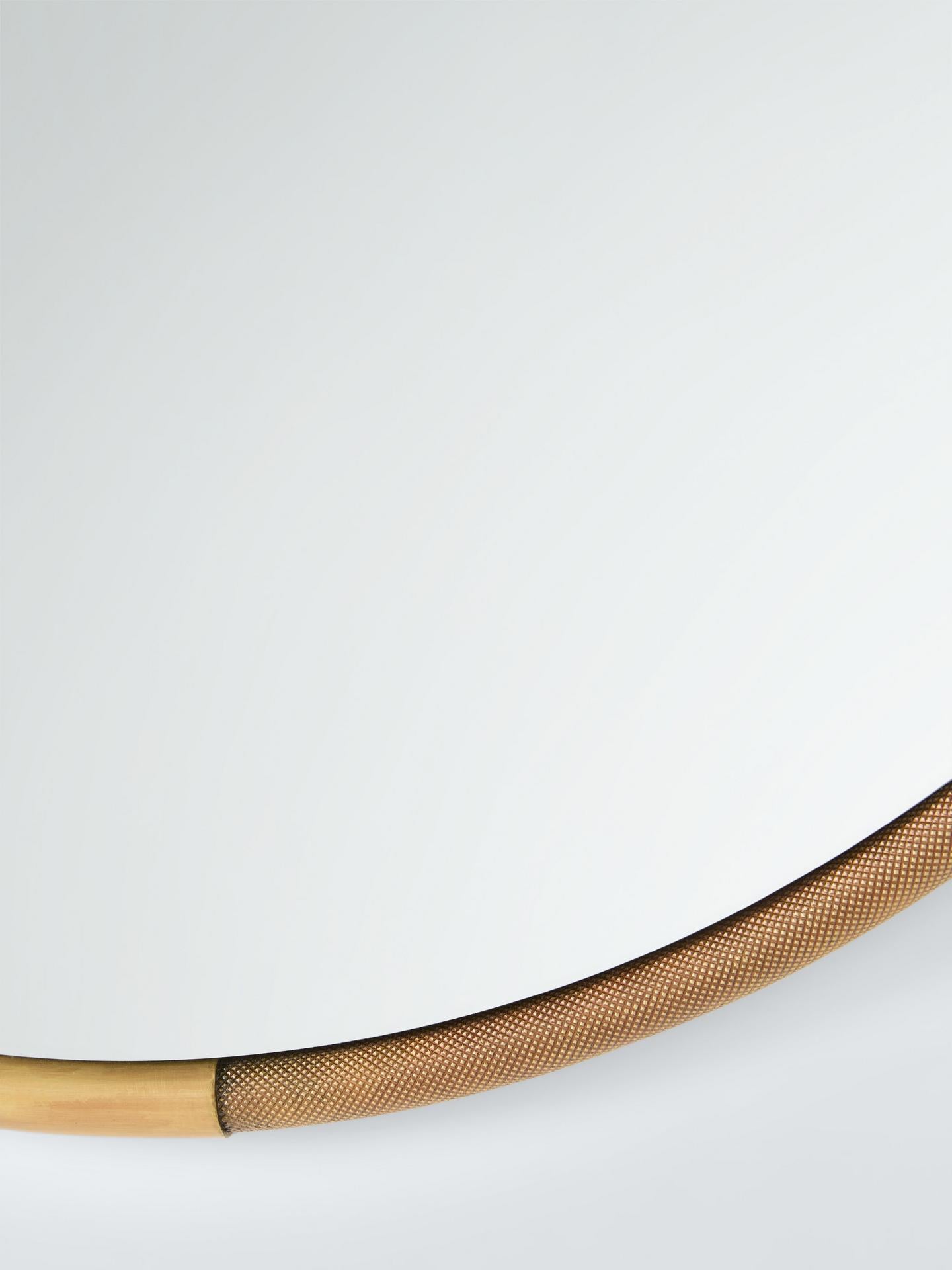 Our Knurl round mirror has a slim profile and takes its name from the knurled metal pattern on the frame, creating subtle texture. Easy to wall-mount using the keyhole fittings on the back.