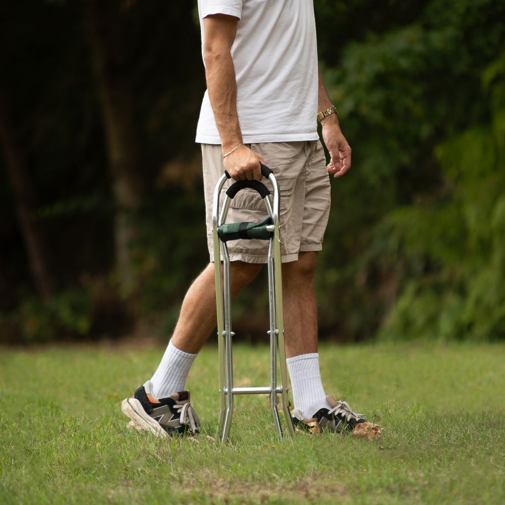 It is simple to use, and gives those who need mobility assitance the option for a quick rest when required. Plus, it is made from a durable and lightweight frame, and the canvas seat supports a maximum weight of 100kg.