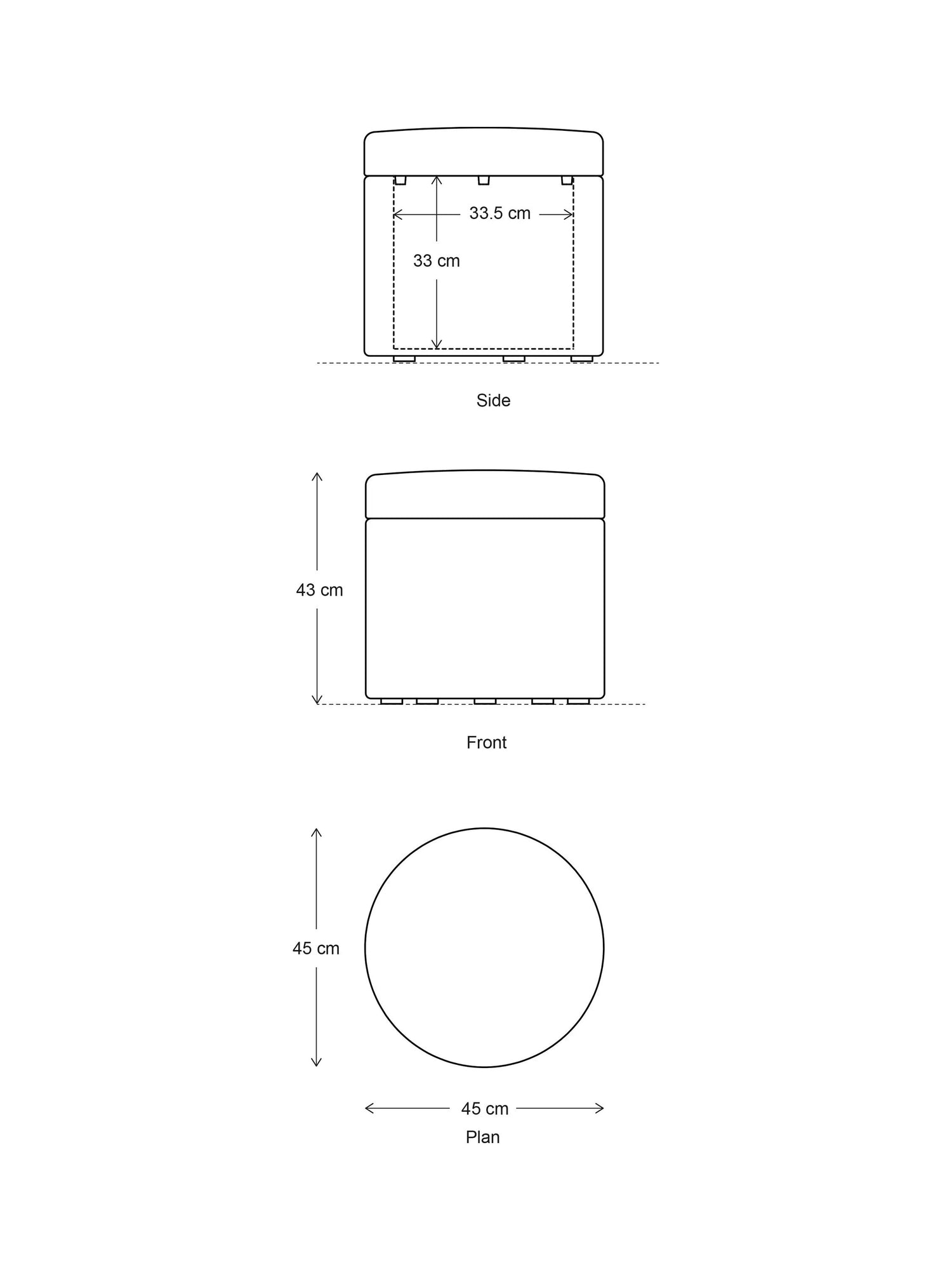 - Dimensions: H43 × W45 × D45 cm