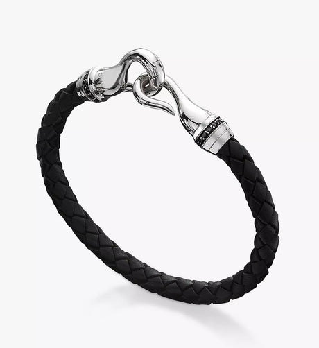 Hoxton London Men's Sapphire Braided Leather Hook Bracelet - Black/Silver
