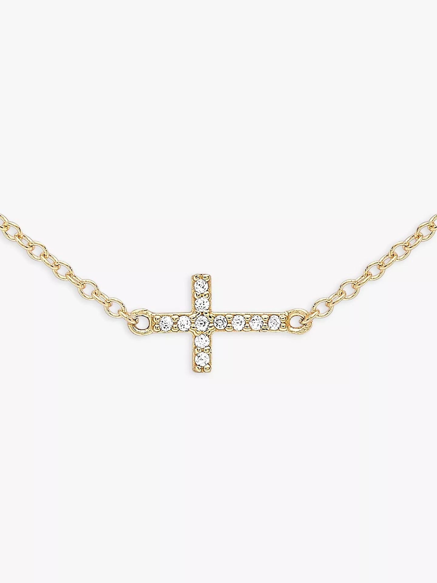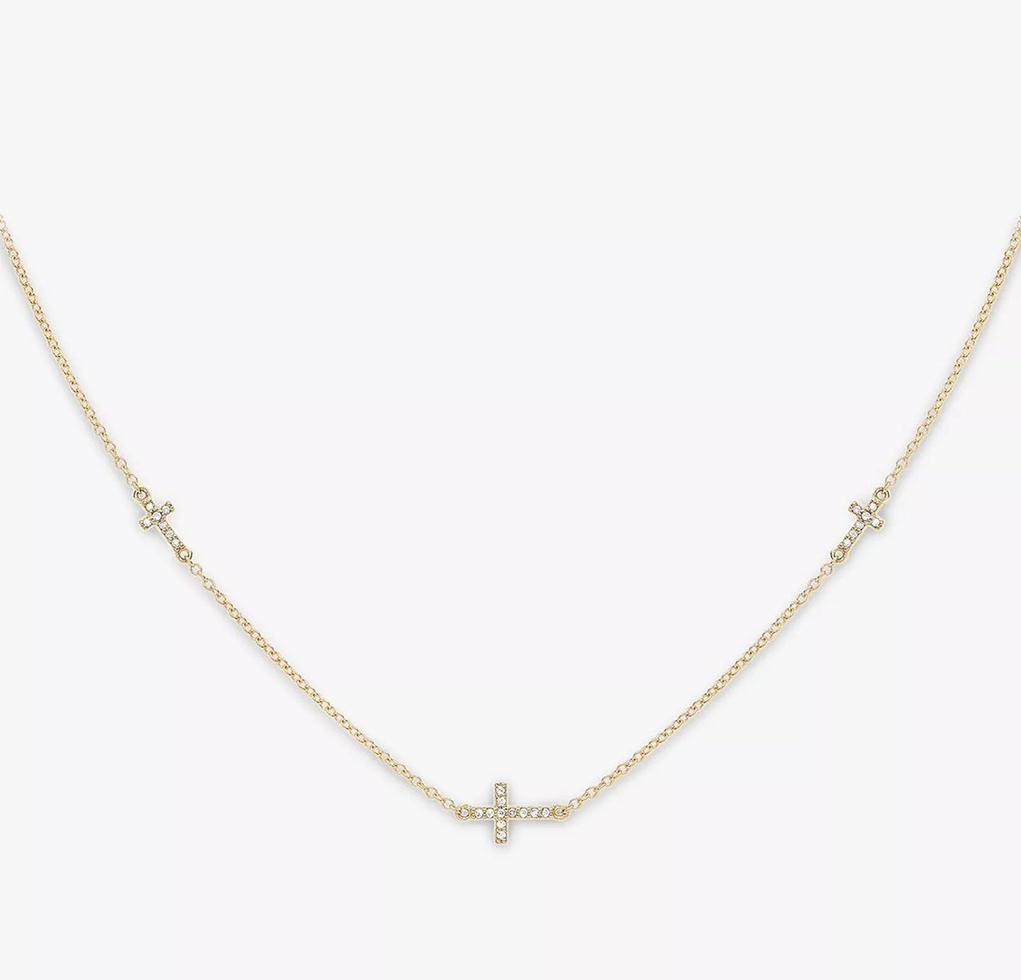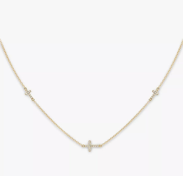 An elegant everyday piece, this IBB necklace comes with a rolo chain and three delicate cross charms. Each cross is set with multiple faceted stones for a touch of light. The chain comes with an adjustable extension to help you find the ideal length to suit your outfit.