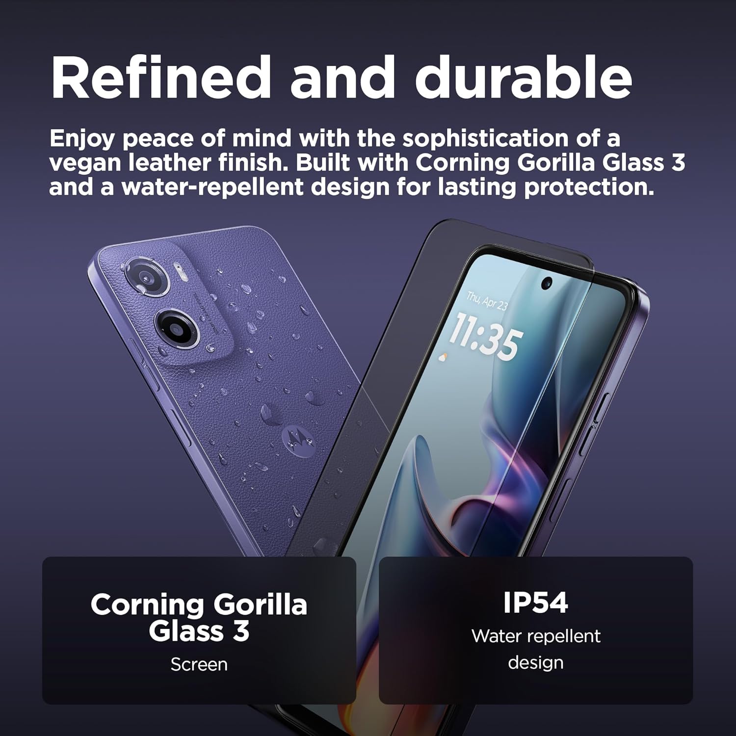 With a vegan leather finish and tough Corning Gorilla Glass 3, moto e15 gives you style that lasts. And you can rely on a long-lasting 5200 mAh battery supporting TurboPower charging.