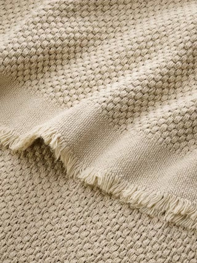 Christy Madeira Cosy Textured Weave Cotton Throw 140 x 180cm - Stone Beige