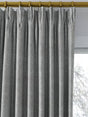 A pair of lined curtains with a classic herringbone weave pattern. The pencil pleat heading creates small, neat folds at the top and the lining lends a full look to the curtains, improving the drape and enhancing the vibrancy of the pattern.