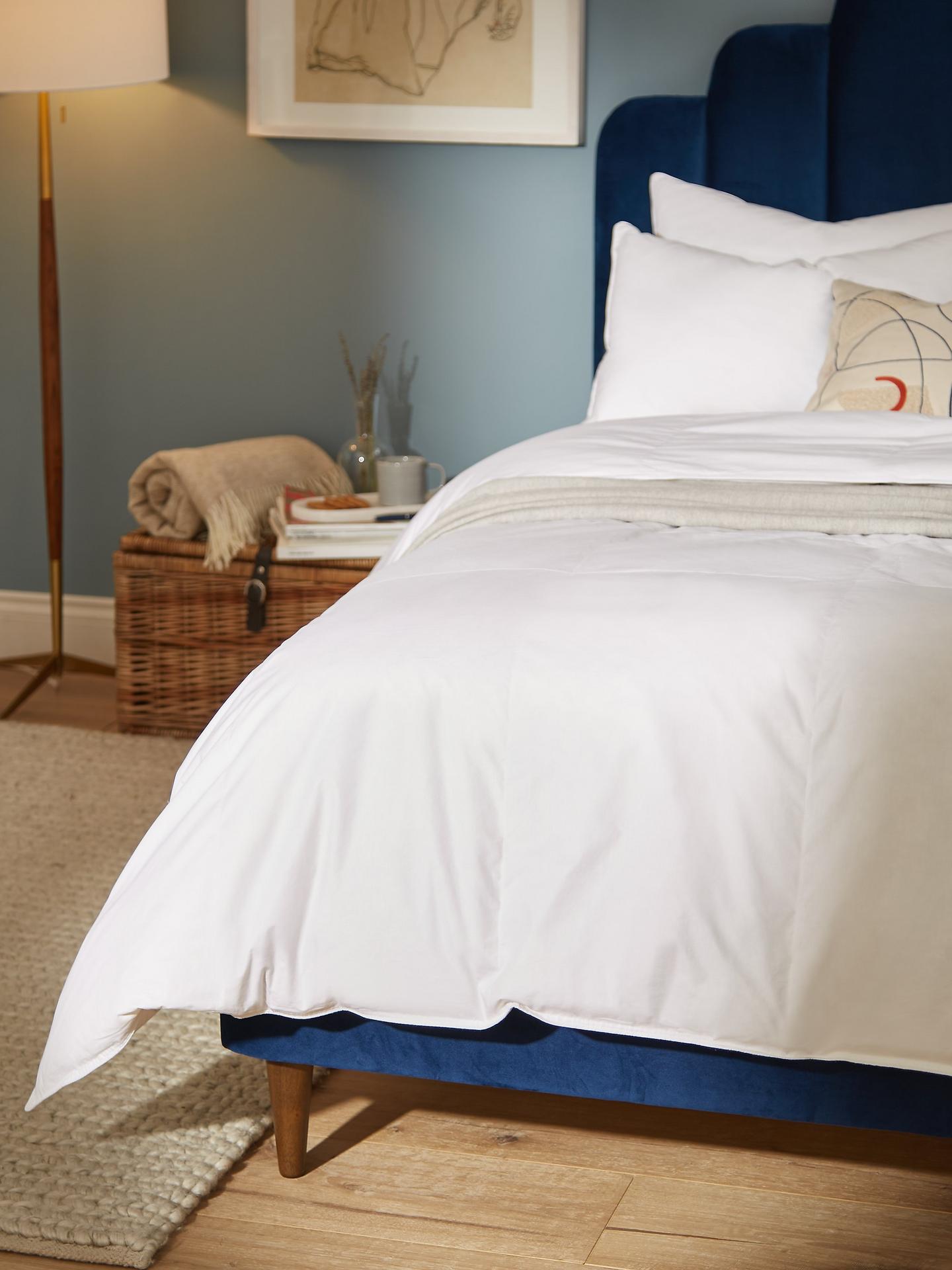 A high percentage of the finest British duck down makes this duvet softer, loftier and lighter with the right amount of warmth. It has a 100% cotton cover for natural breathability and the box-style construction ensures no cold patches by keeping the filling evenly distributed for perfect comfort night after night.
