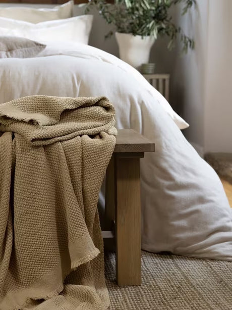 Christy Madeira Cosy Textured Weave Cotton Throw 140 x 180cm - Stone Beige