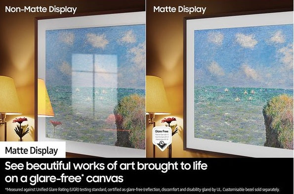 The Frame TV fits beautifully into the home, designed to look just like a picture frame, transforming into a piece of art when you're not watching TV. Powered by Quantum Dot for a naturally bright and colourful picture, its glare-free 4K QLED matte display absorbs reflections. It can mount flush to the wall with the included Slim fit wall mount. Control all compatible devices with its Solar Cell One Remote, and access a world of online entertainment and handy home apps via Samsung's Smart platform, and interact by voice with both Bixby and Alexa built in.