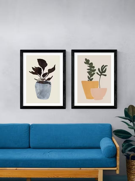 EAST END PRINTS Dan Hobday 'Plant Pot' Framed Prints 83 x 63cm - Black Frame