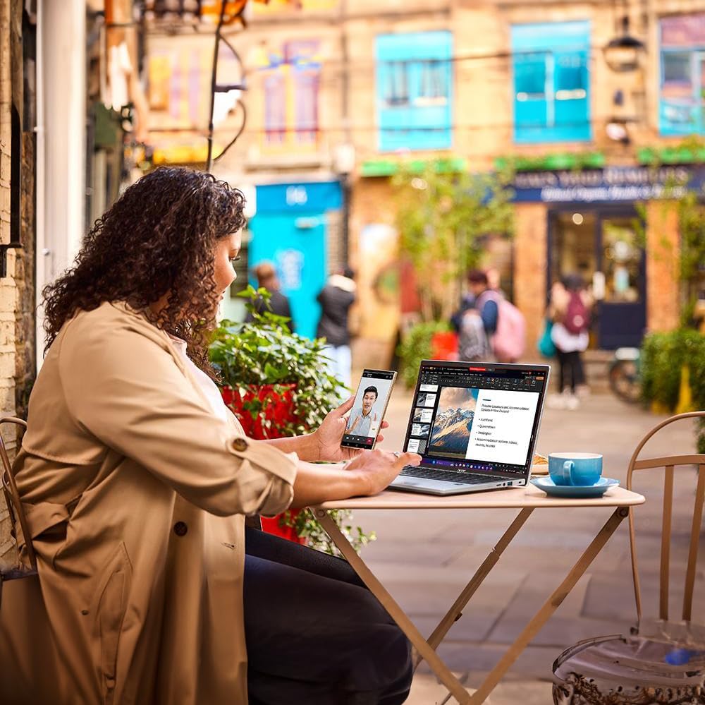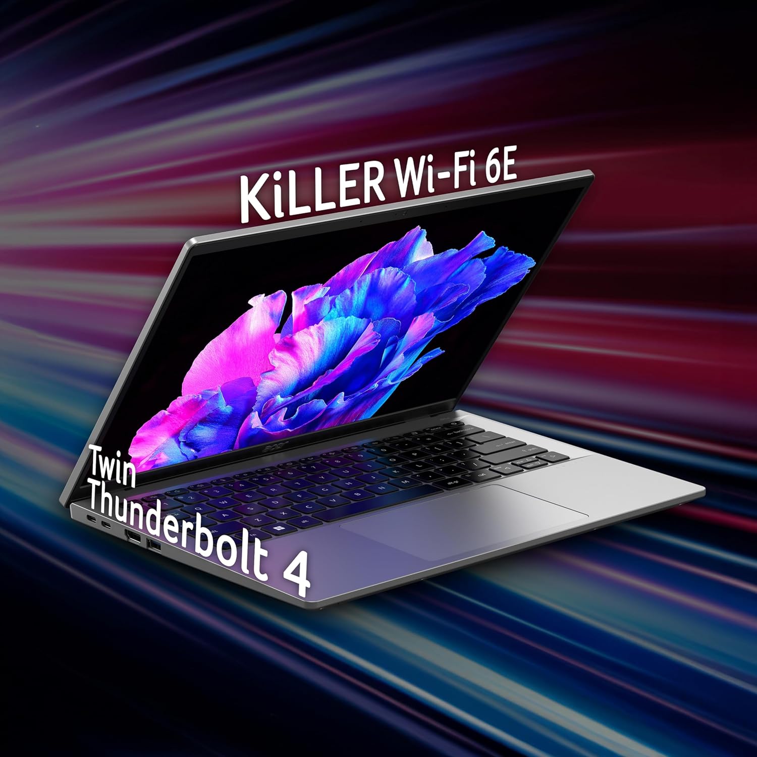 At just 1.32 Kg, you'd never guess how much potential is hiding in the Acer Swift Go. That's because the Intel Core Ultra 5 processor isn't just powerful, it's super-efficient, too. It uses Intel AI Boost for an extra kick in AI applications – you can access all of them in the AcerSense app. And when it's time to take a break and watch a movie, you're in for a treat. The 2.8K OLED display is full of contrast, colour and detail. It makes even spreadsheets look good.