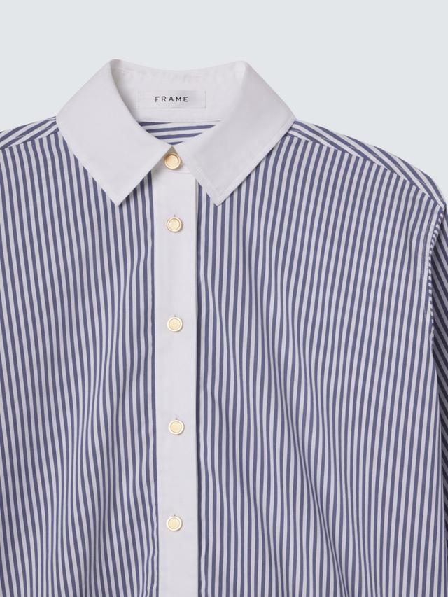 Frame The Borrowed Womens Cotton Blend Stripe Shirt - Blue/White - Size L - NEW is backordered and will ship as soon as it is back in stock.