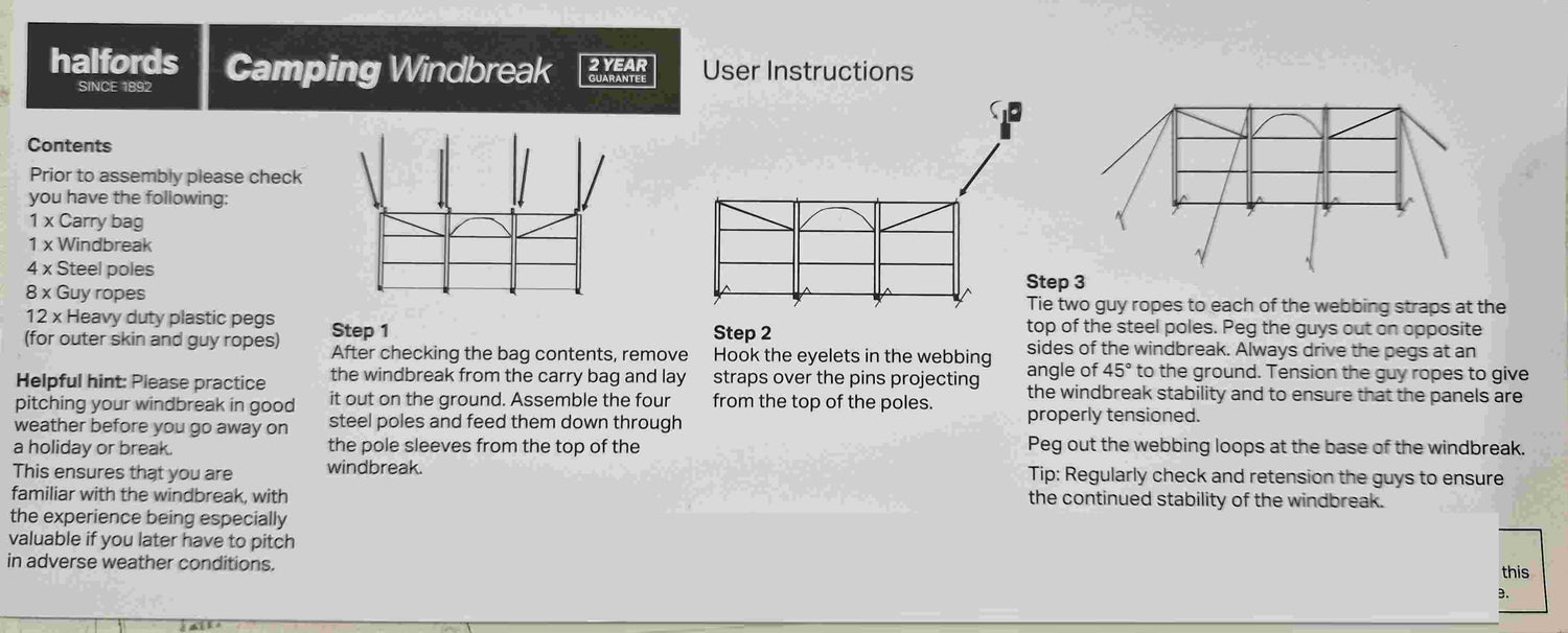 This 3 panel 4 pole windscreen that operates as a sturdy standalone shelter on a campsite or beach.