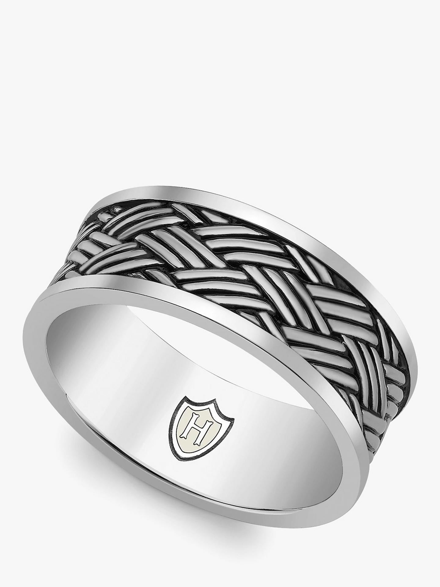 Hoxton London Men's Bamboo Oxidised 9.5g Ring Solid Sterling Silver Size T