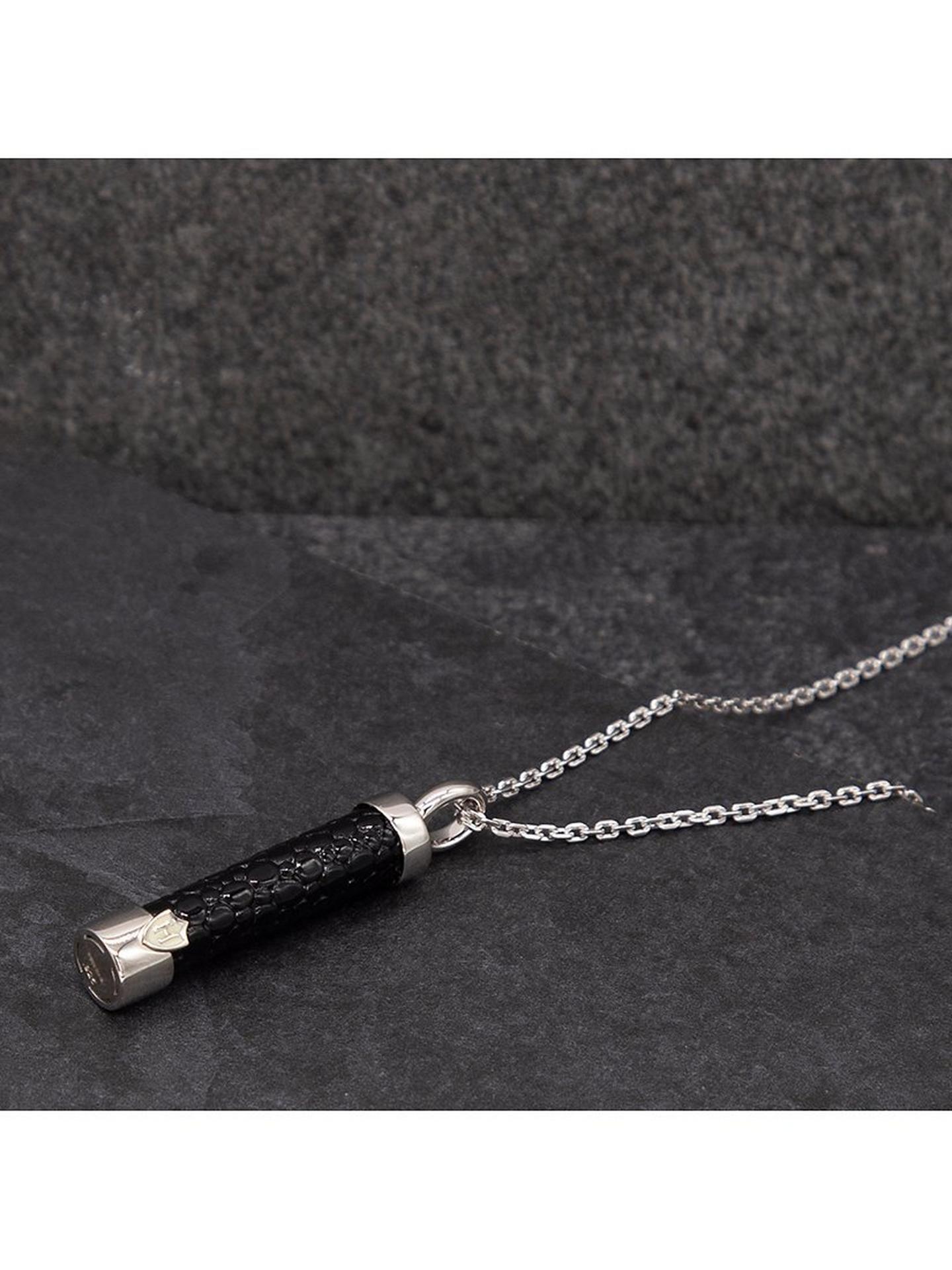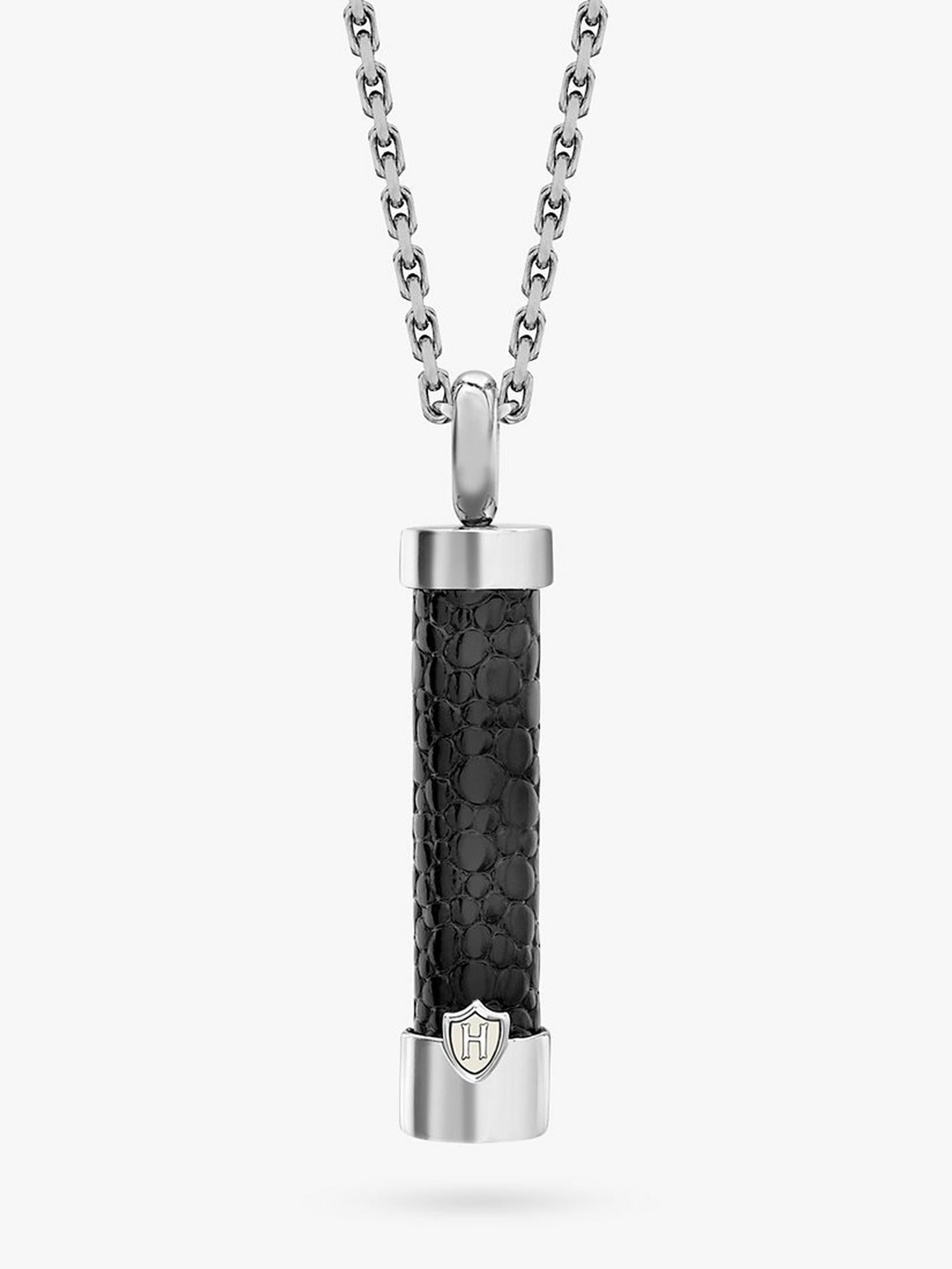 Hoxton London Men's Leather Inlay Cylinder Pendant Necklace - Silver/Black - NEW is backordered and will ship as soon as it is back in stock.
