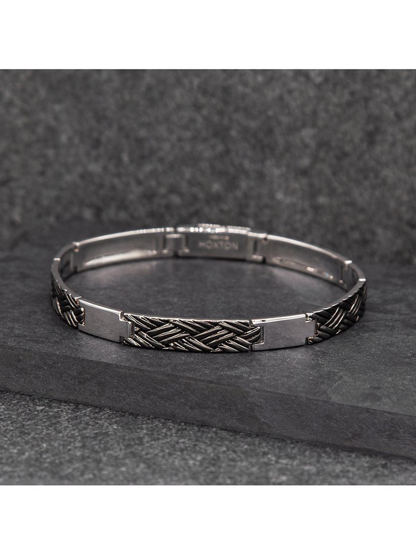 Hoxton London Men's Woven Pattern Oxidised Bar Link Bracelet Sterling Silver