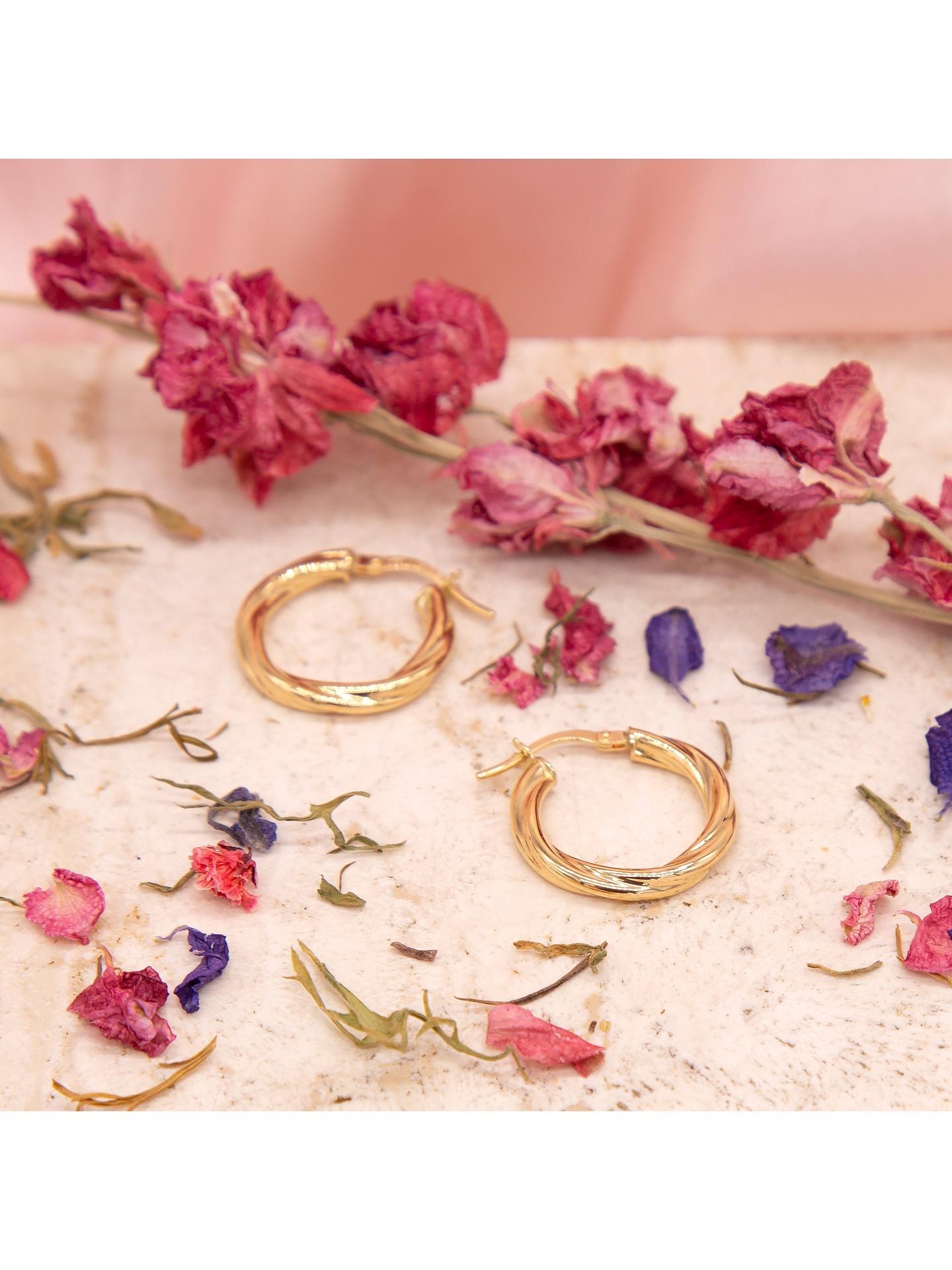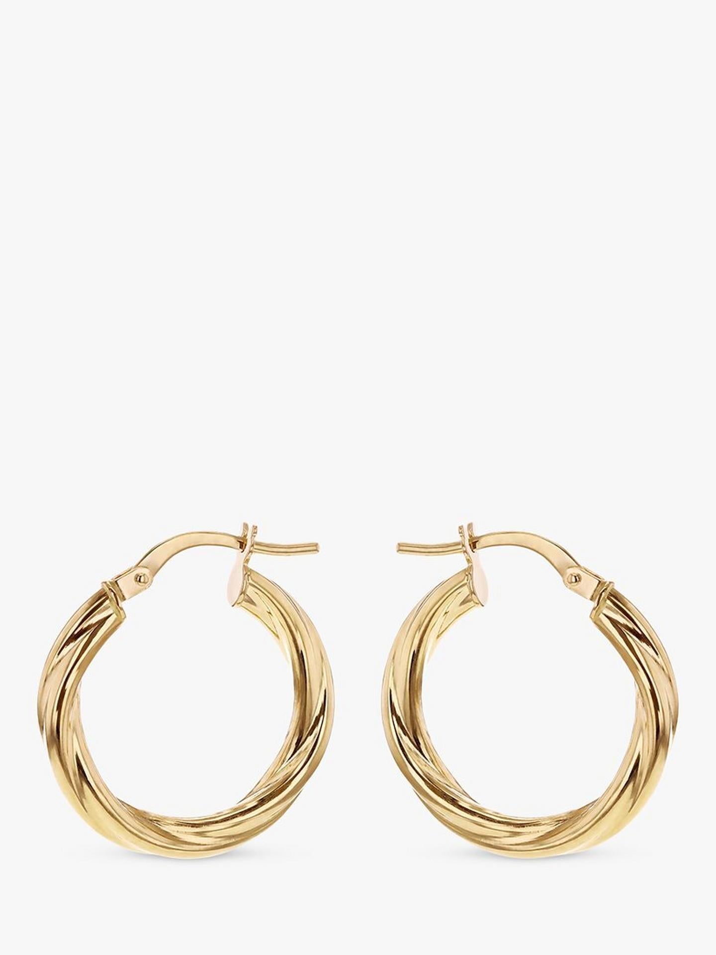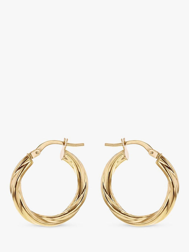 IBB Womens 18ct Solid Yellow Gold Hollow Twisted Tube Hoop Earrings - Gold
