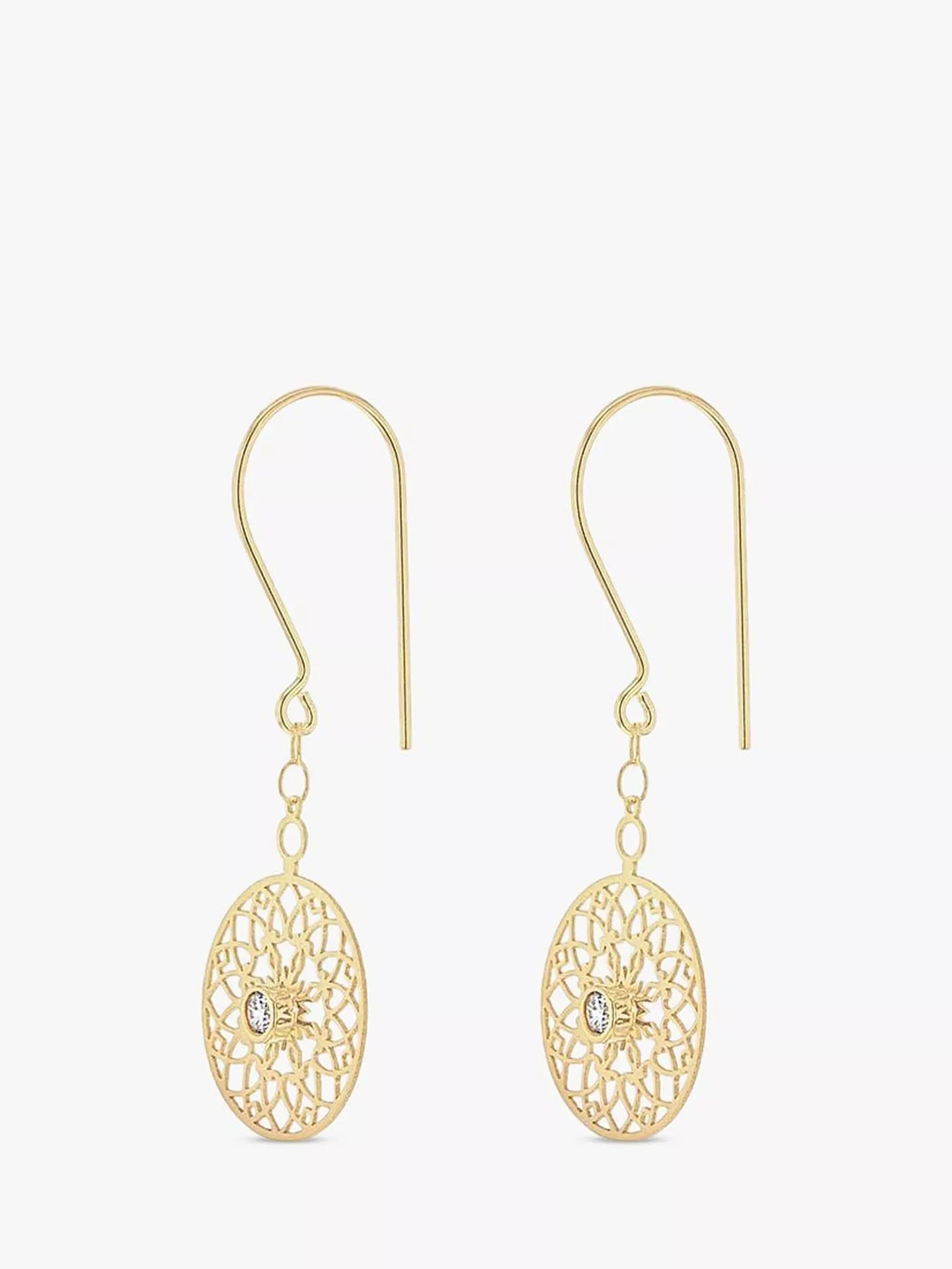 IBB Women's 9ct Gold Fine Jewellery Gemstone Filigree Round Drop Earrings