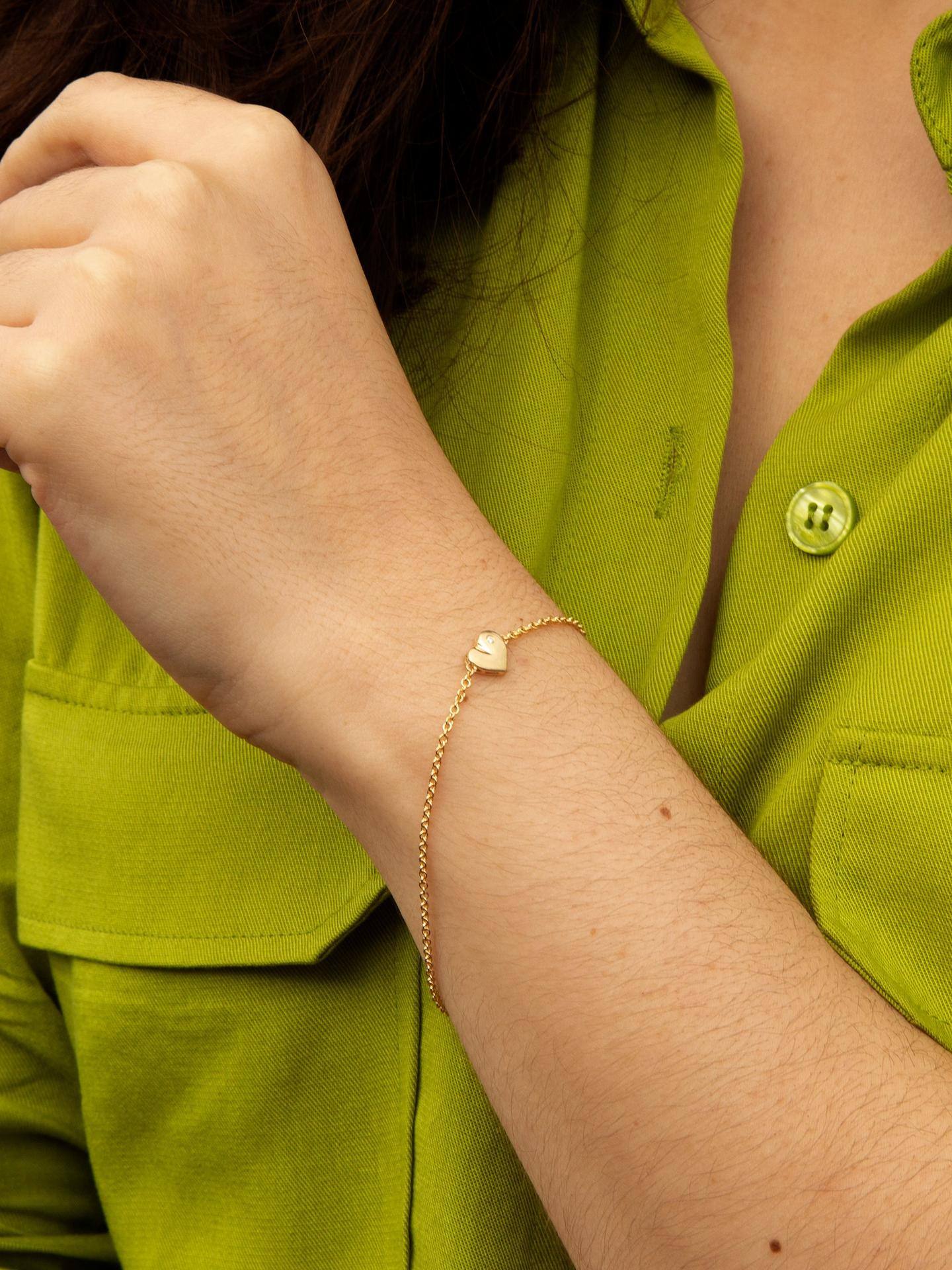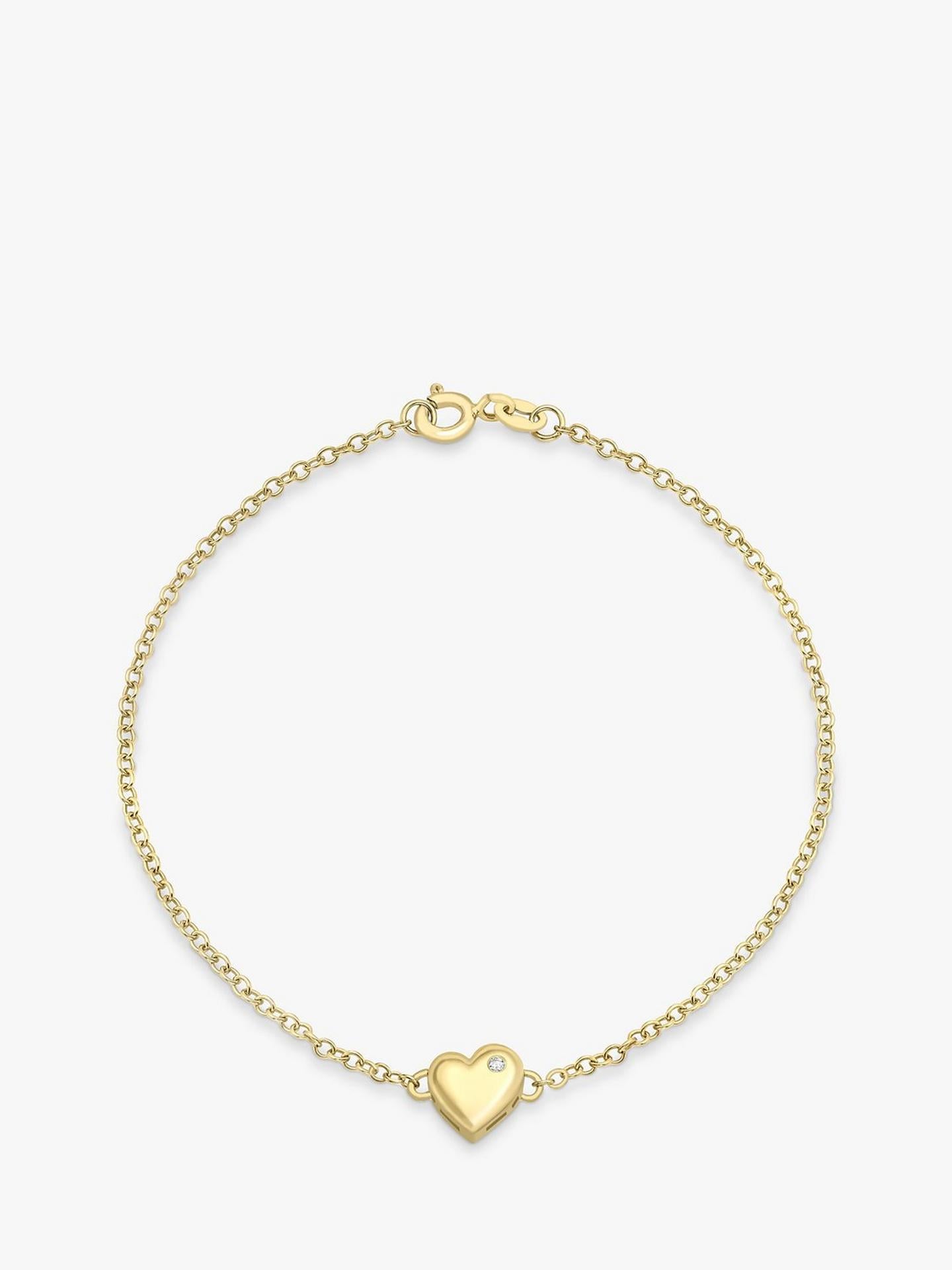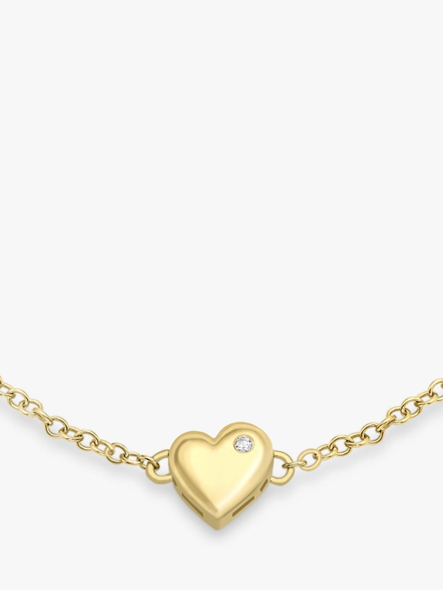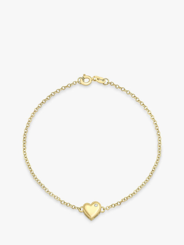 IBB Womens 9ct Yellow Gold 19cm Diamond Heart Charm Chain Bracelet - Gold