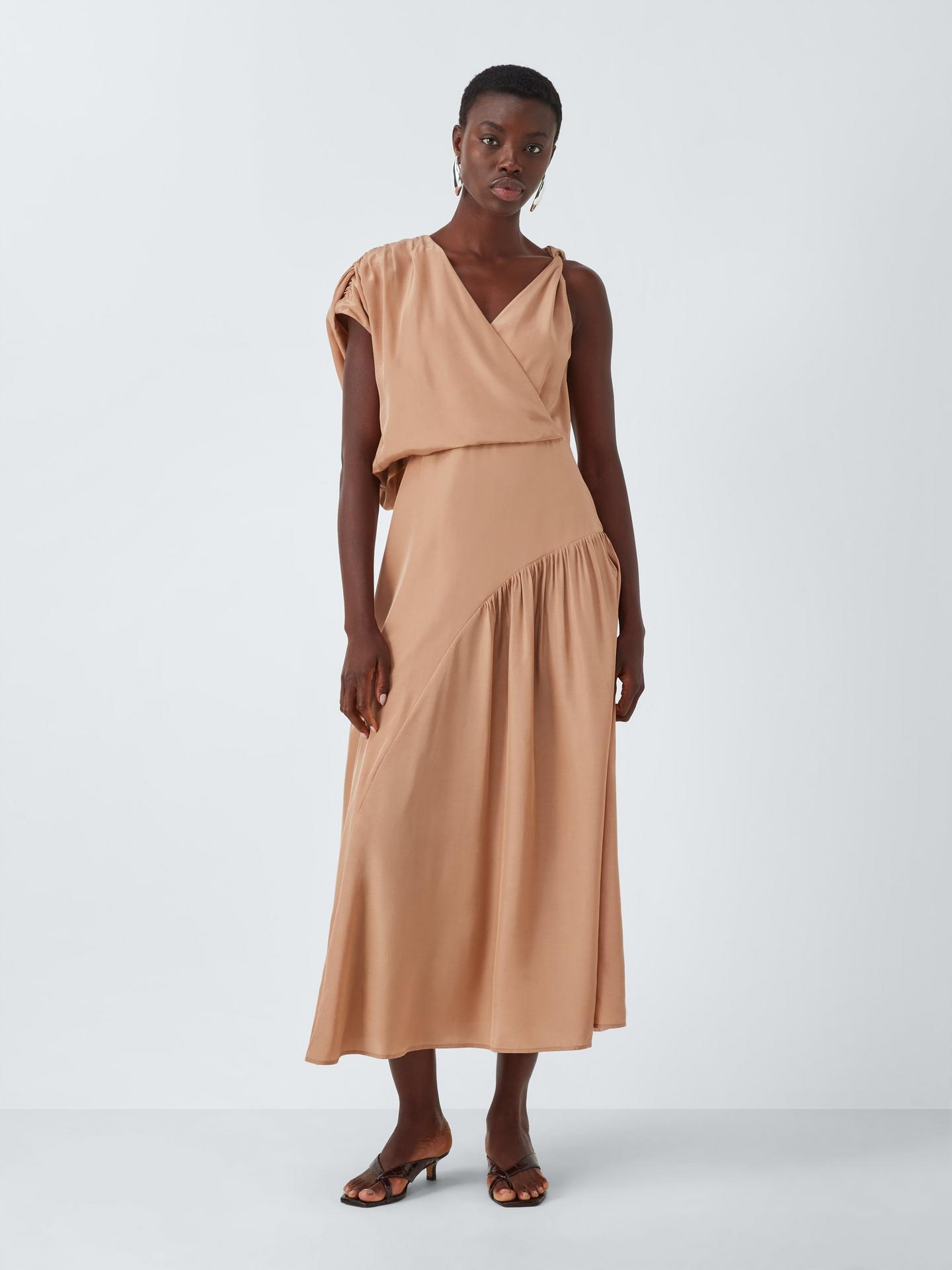 John Lewis Editions Drape Twist Silk Tencel Blend Maxi Dress Café Au Lait 14