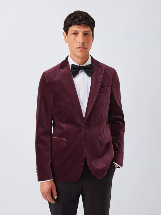 John Lewis Men's Slim Fit Single Breasted Cotton Velvet Blazer - Grape 40R