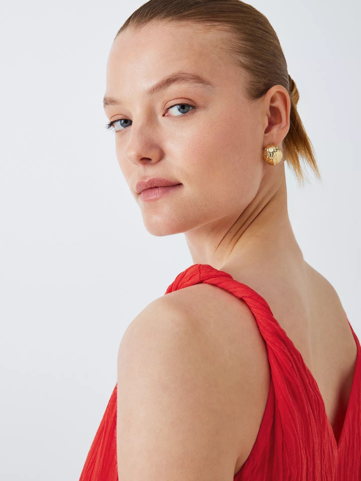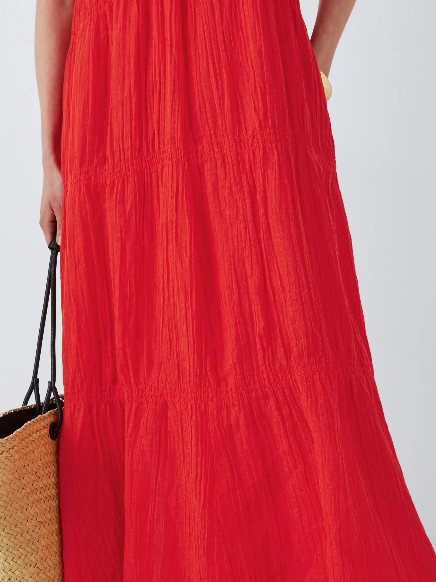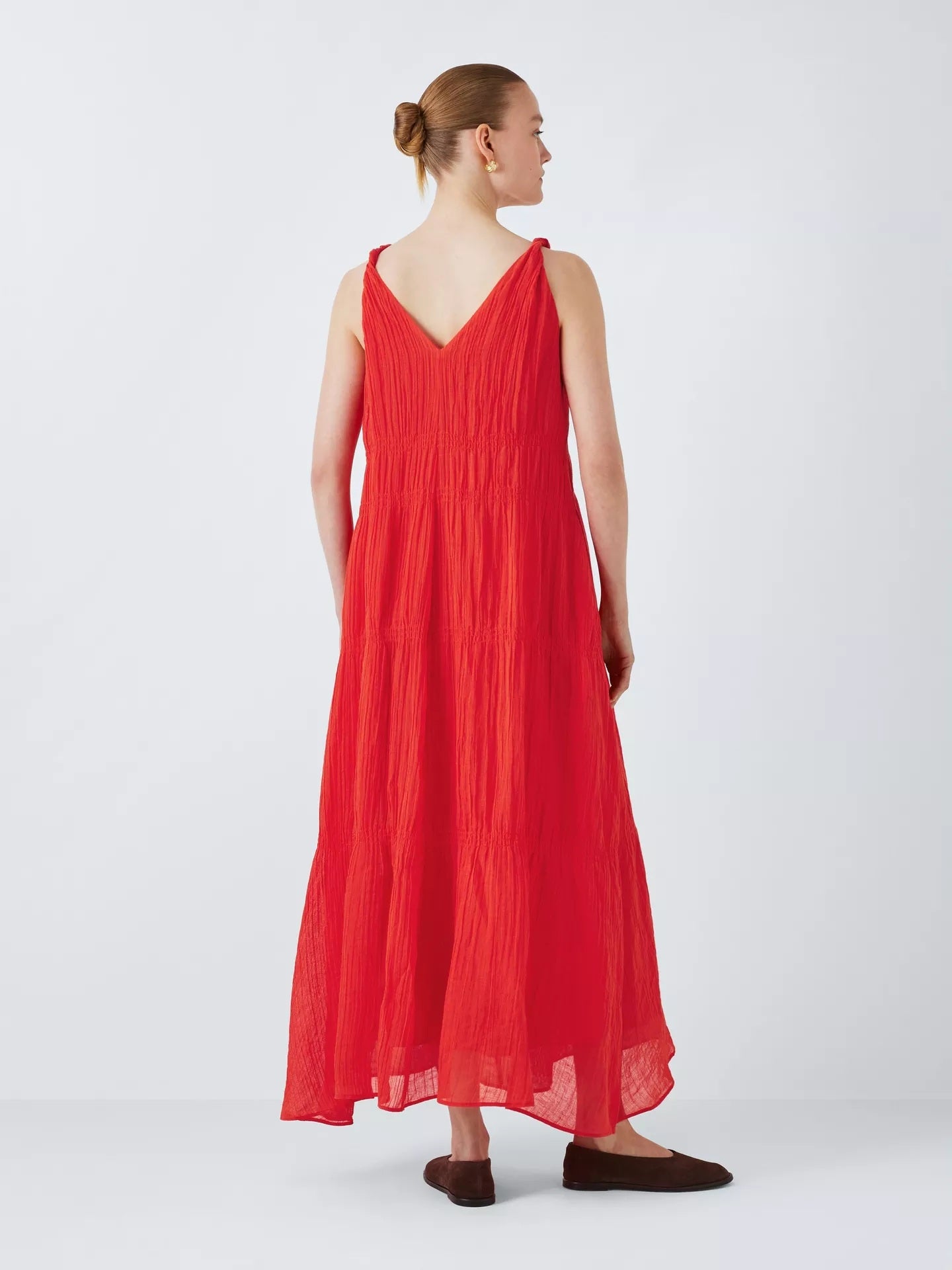 John Lewis Ramie Smocked Sleeveless Summer Cotton Maxi Dress - Coral UK 10