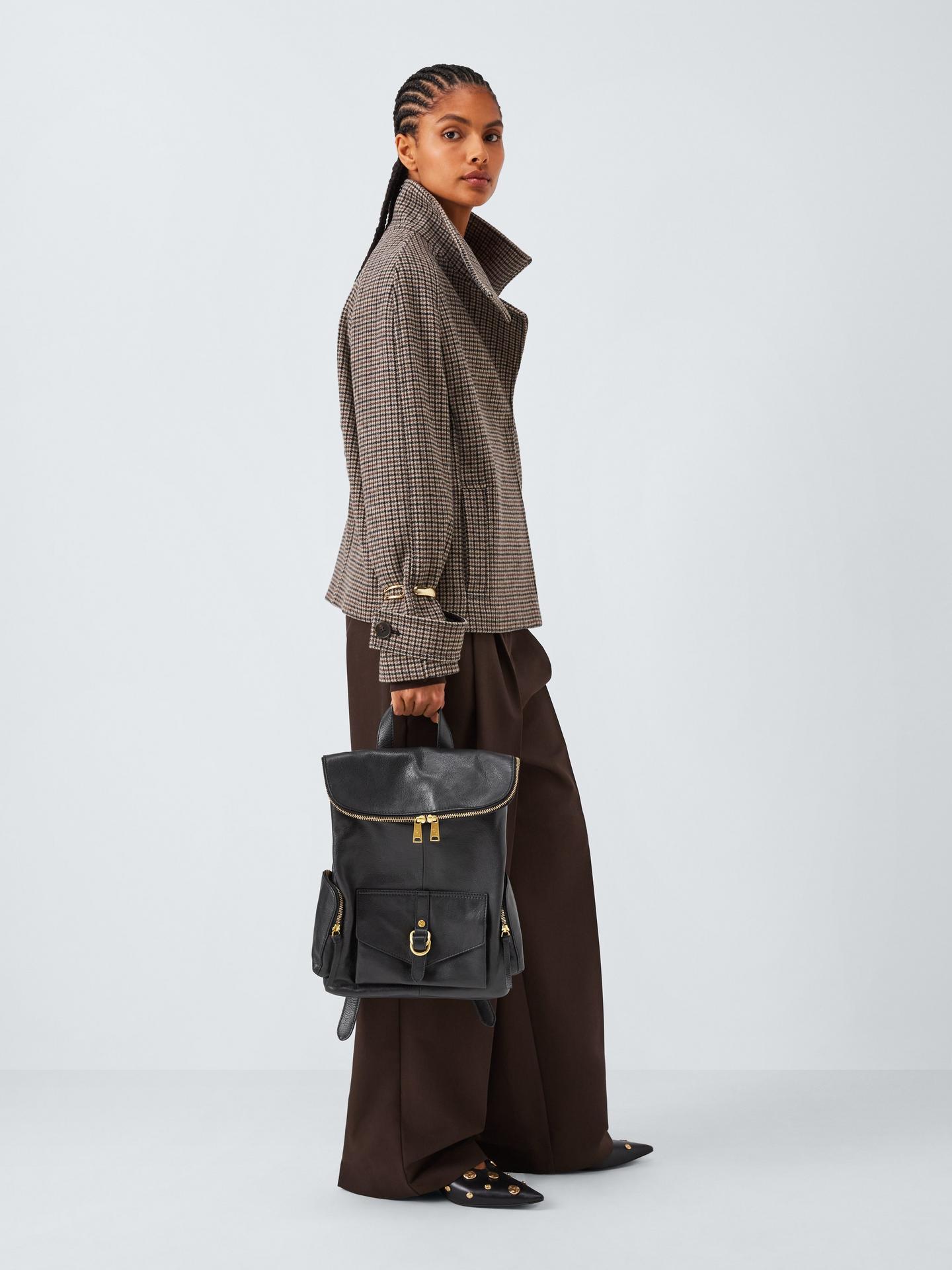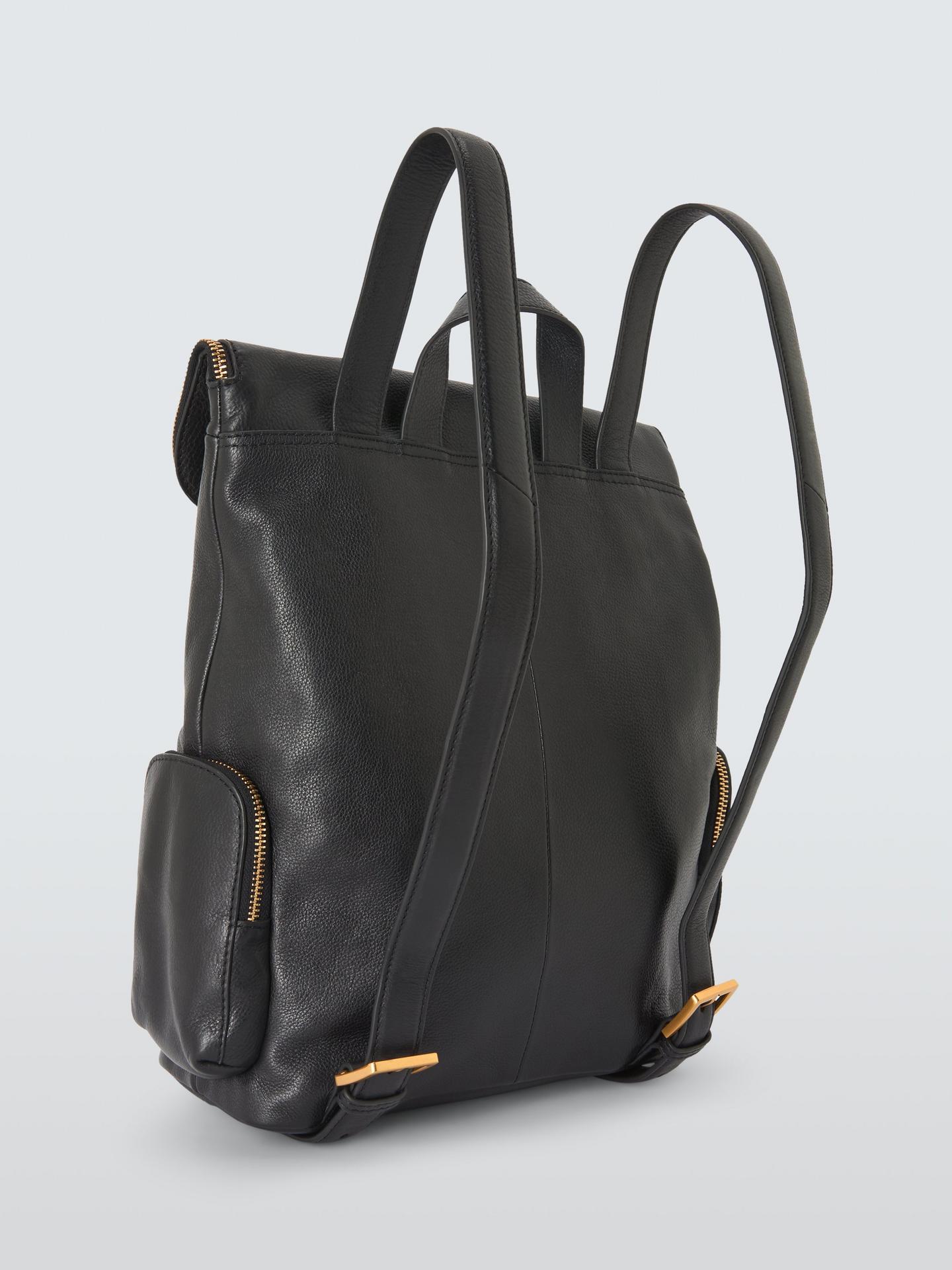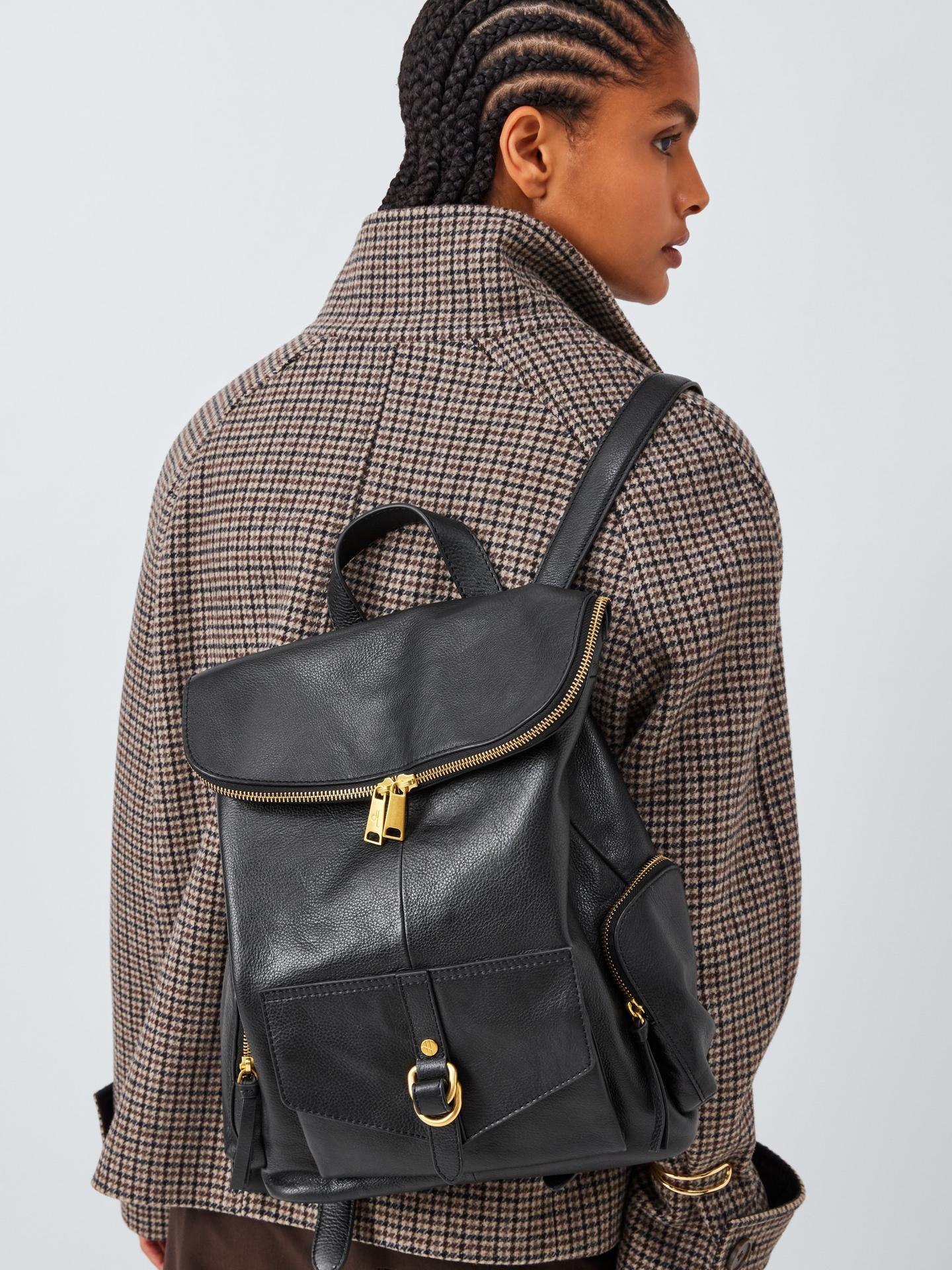 John Lewis Womens Adjustable Strap Leather Utility Zip Backpack - Black