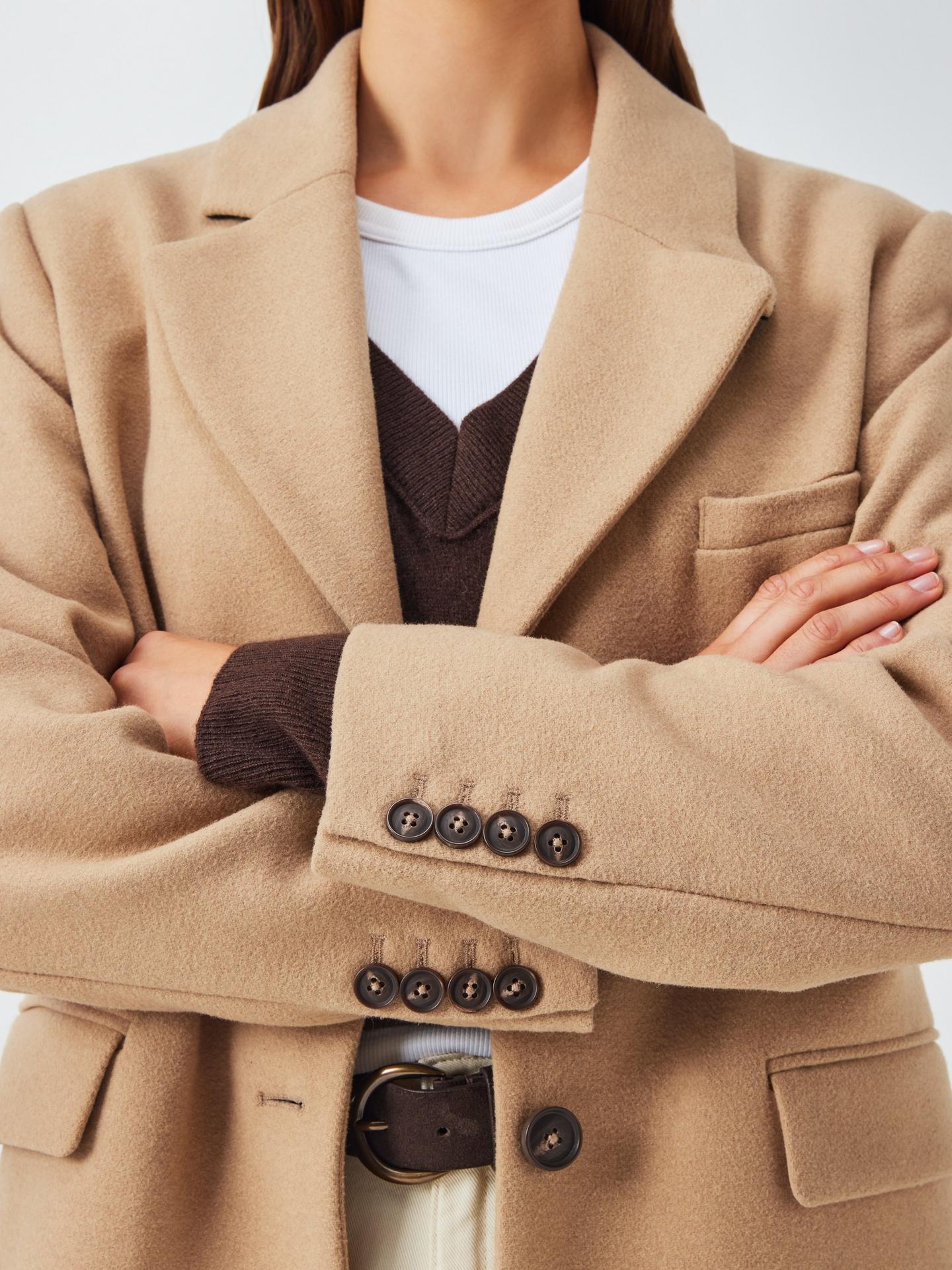 John Lewis Womens Regular Fit Single Breasted Wool Blend Coat - Size 8 Camel