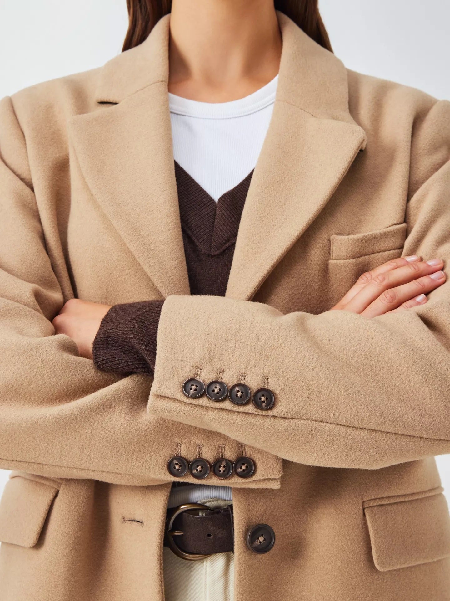 John Lewis Women's Single Breasted Knee Length Wool Blend Coat - Camel UK 12