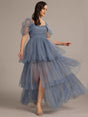 Lace & Beads Sydney Off Shoulder Tulle Tiered Maxi Dress UK 10 - Dusty Blue
