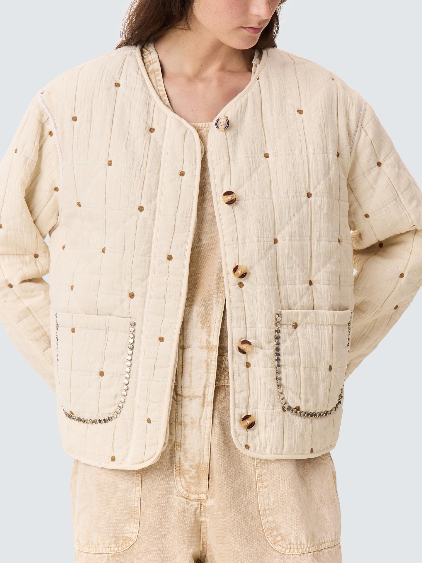 Quilted for cosy layering on days that require protection from the elements, this jacket from Leon & Harper sits at the hip for versatile coverage. With a round neckline and beaded embellishment, it is made from cotton for breathable comfort.