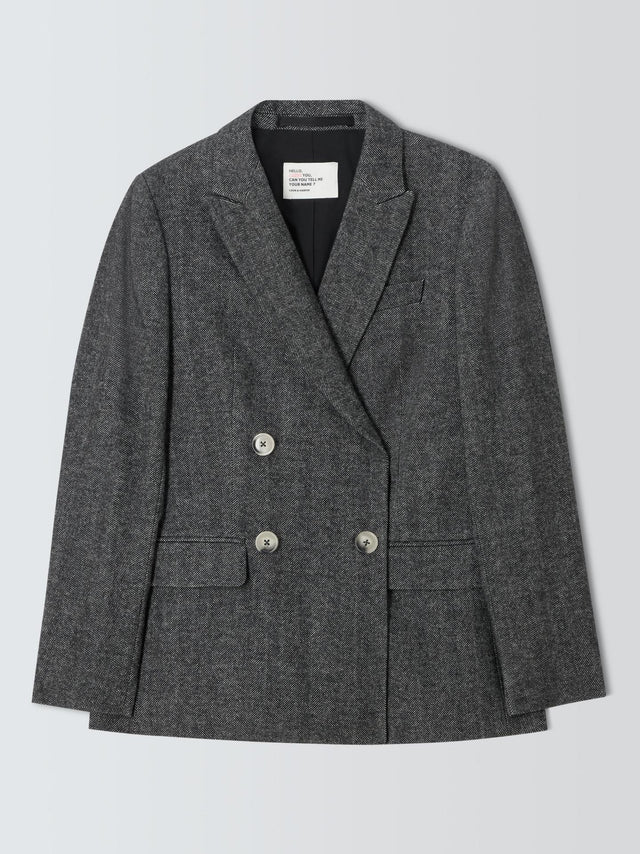 Leon & Harper Volverte Chevron Stripe Double Breasted Blazer Grey - Size M