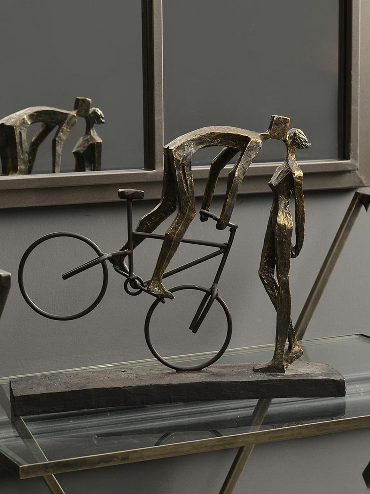 Libra Interiors Playful Kissing Couple on a Bike Sculpture - Metallic Bronze