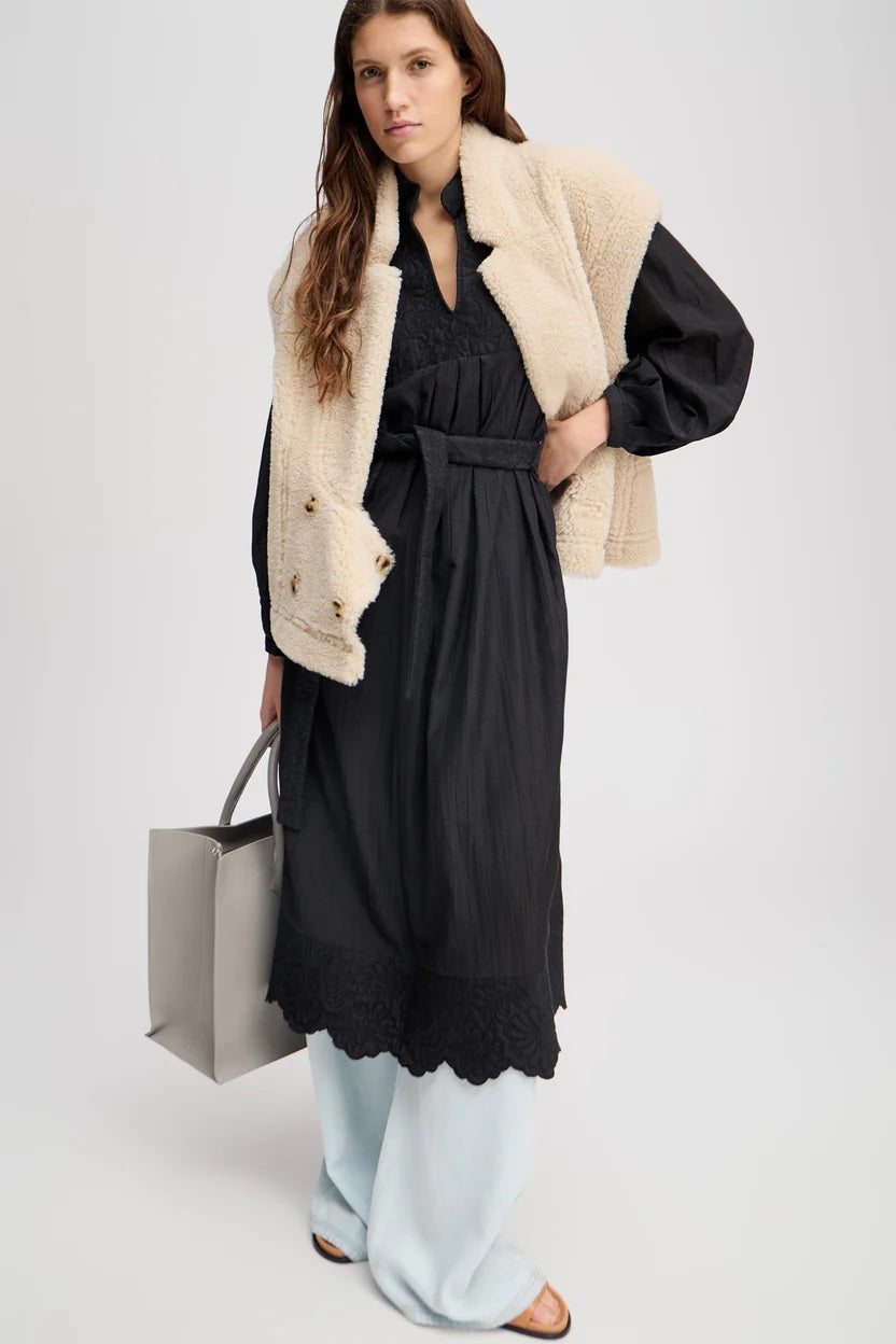 MUNTHE Fonxo Embroidered V-Neck Cotton Blend Midi Dress - Black - Size 40 - NEW is backordered and will ship as soon as it is back in stock.