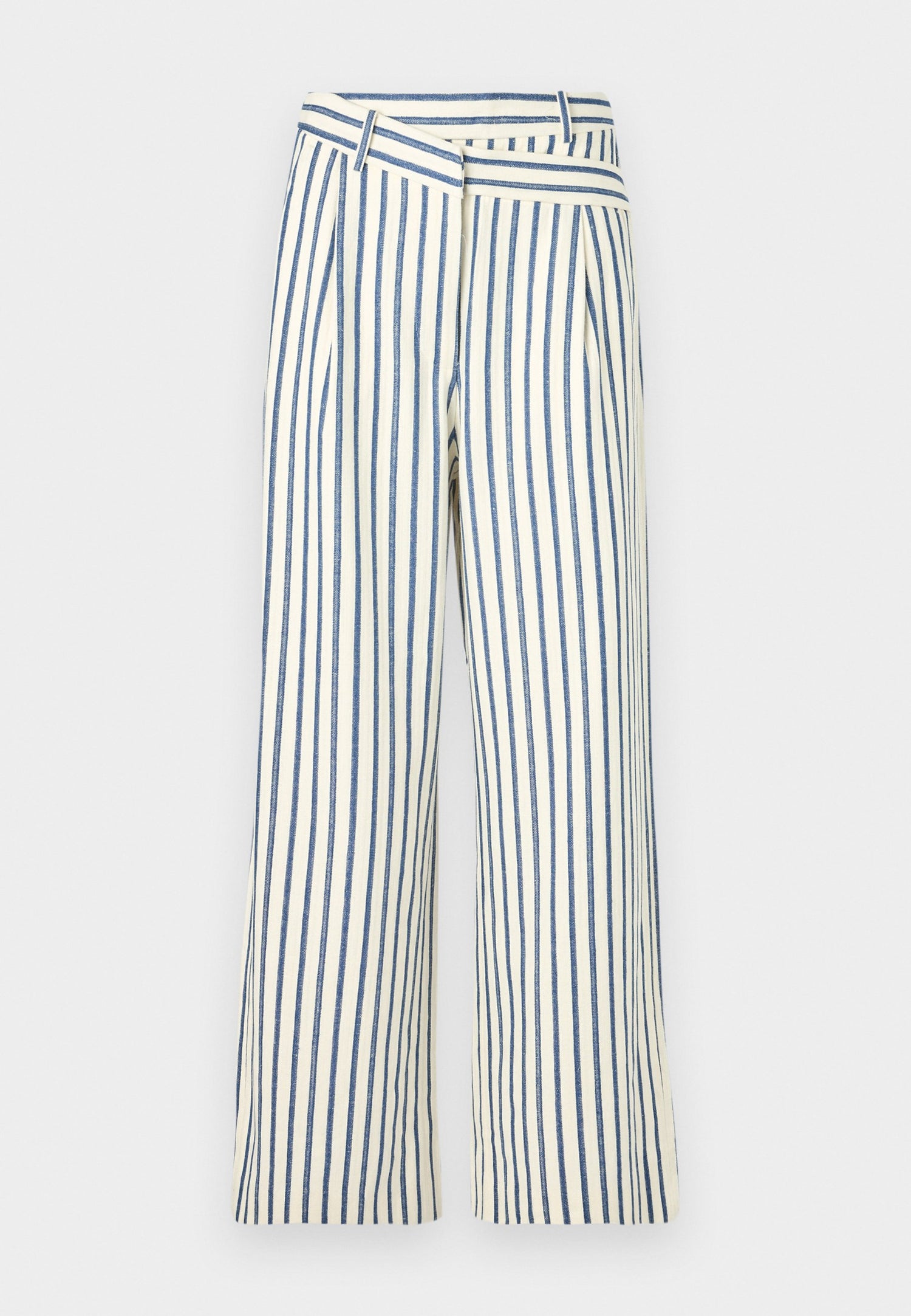 Munthe Payton Womens Cotton Blend High Rise Stripes Trousers - Size 40 Navy