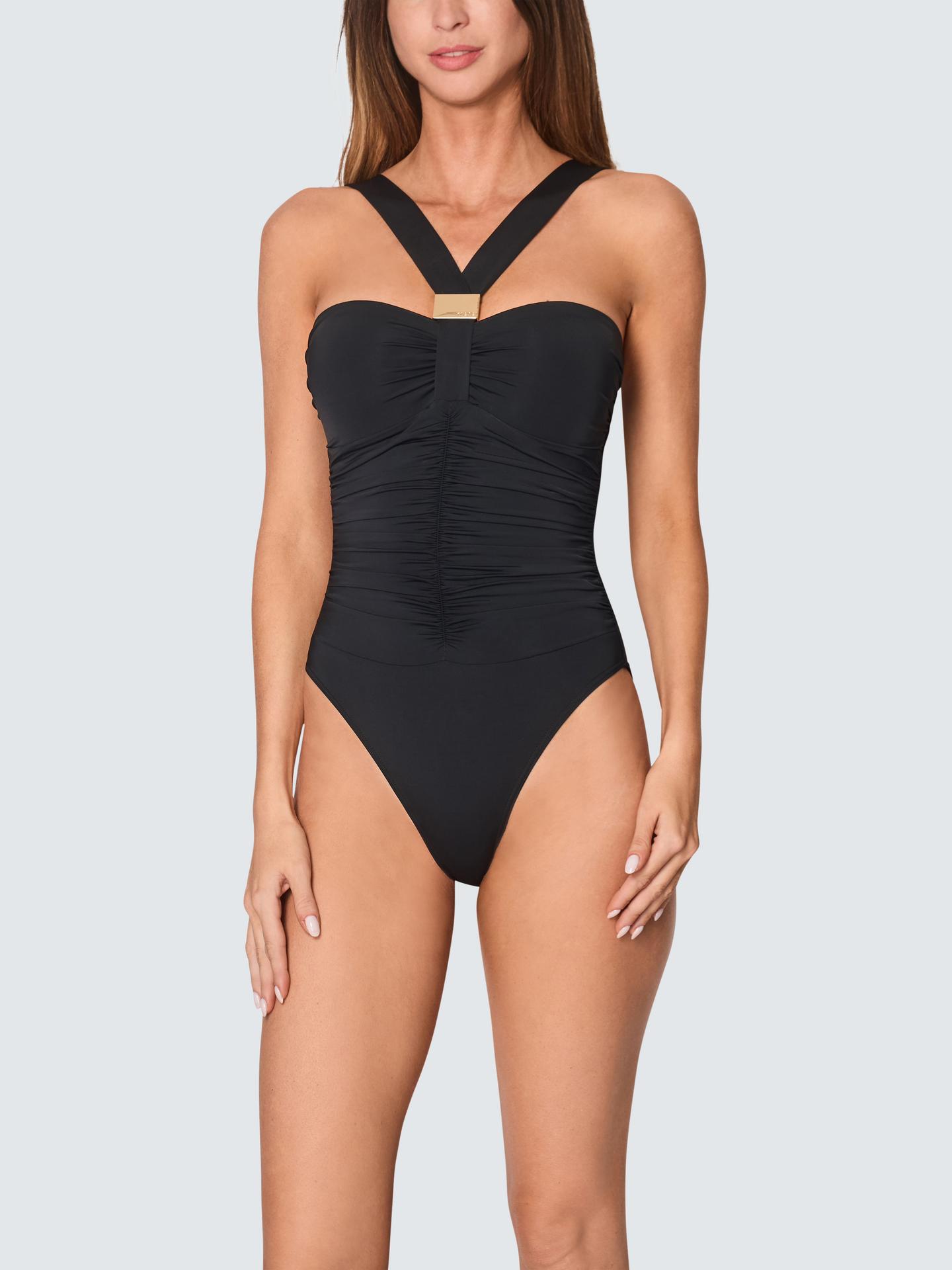 Meet Selene with its modern yet timeless appeal, a stunning piece that delivers on every level. Designed to enhance your shape, with clever ruching over the stomach creating a beautiful hourglass silhouette. The Selene boasts a stunning neckline featuring fixed straps that can be slipped off the shoulders in the sun and the statement gold Naia trim showcases the shoulders perfectly.