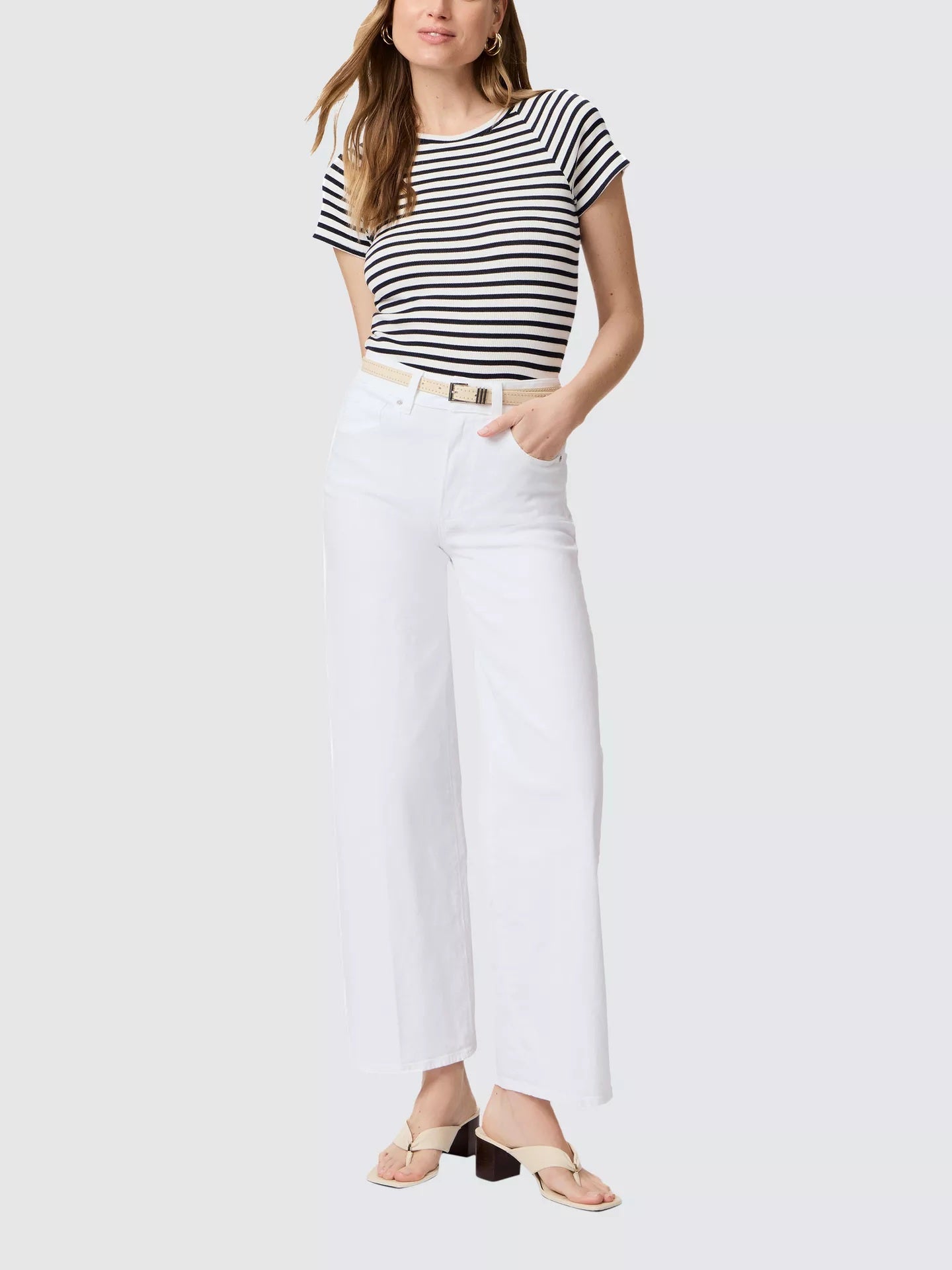 Sasha is a high rise wide leg designed with a fitted top block and a slightly relaxed fit. This pair is cut from crisp denim with a 32" inseam in the perfect weight that provides coverage and has a bit of stretch for the most comfortable fit.