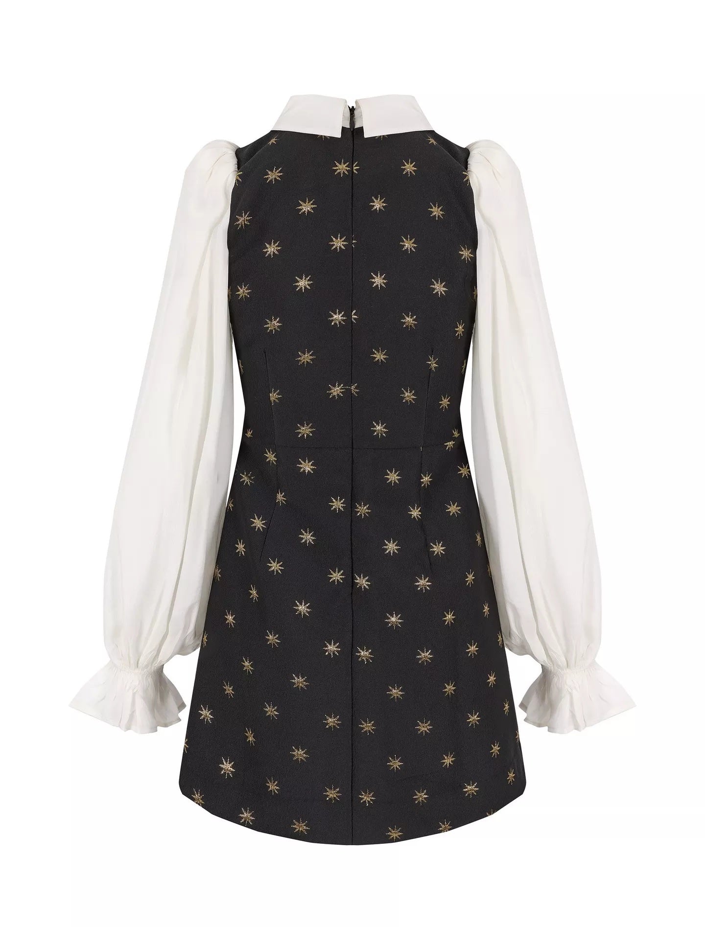 Queens of archive Mari Star Brocade Black/White Baloon Sleeve Mini Dress - M