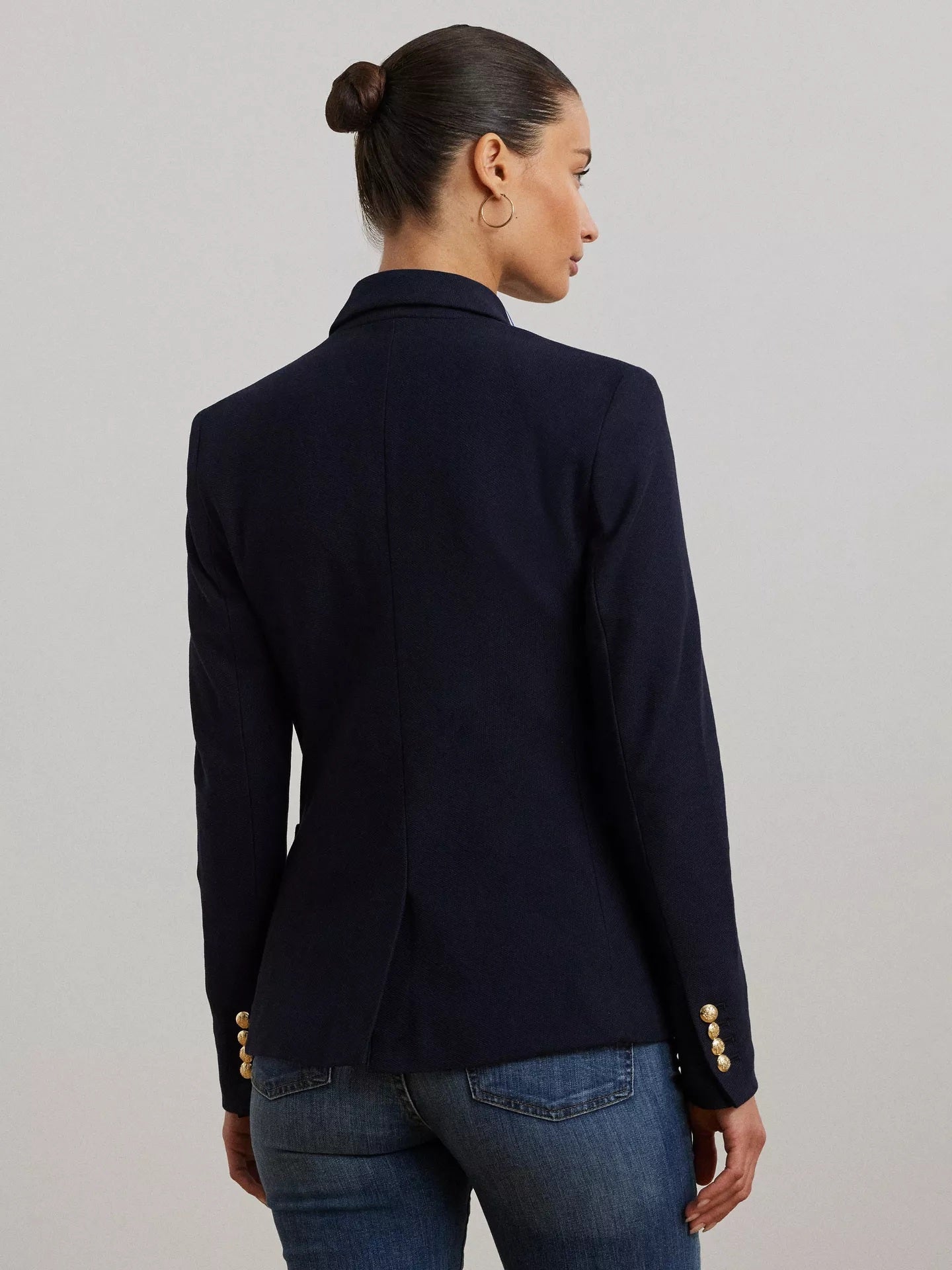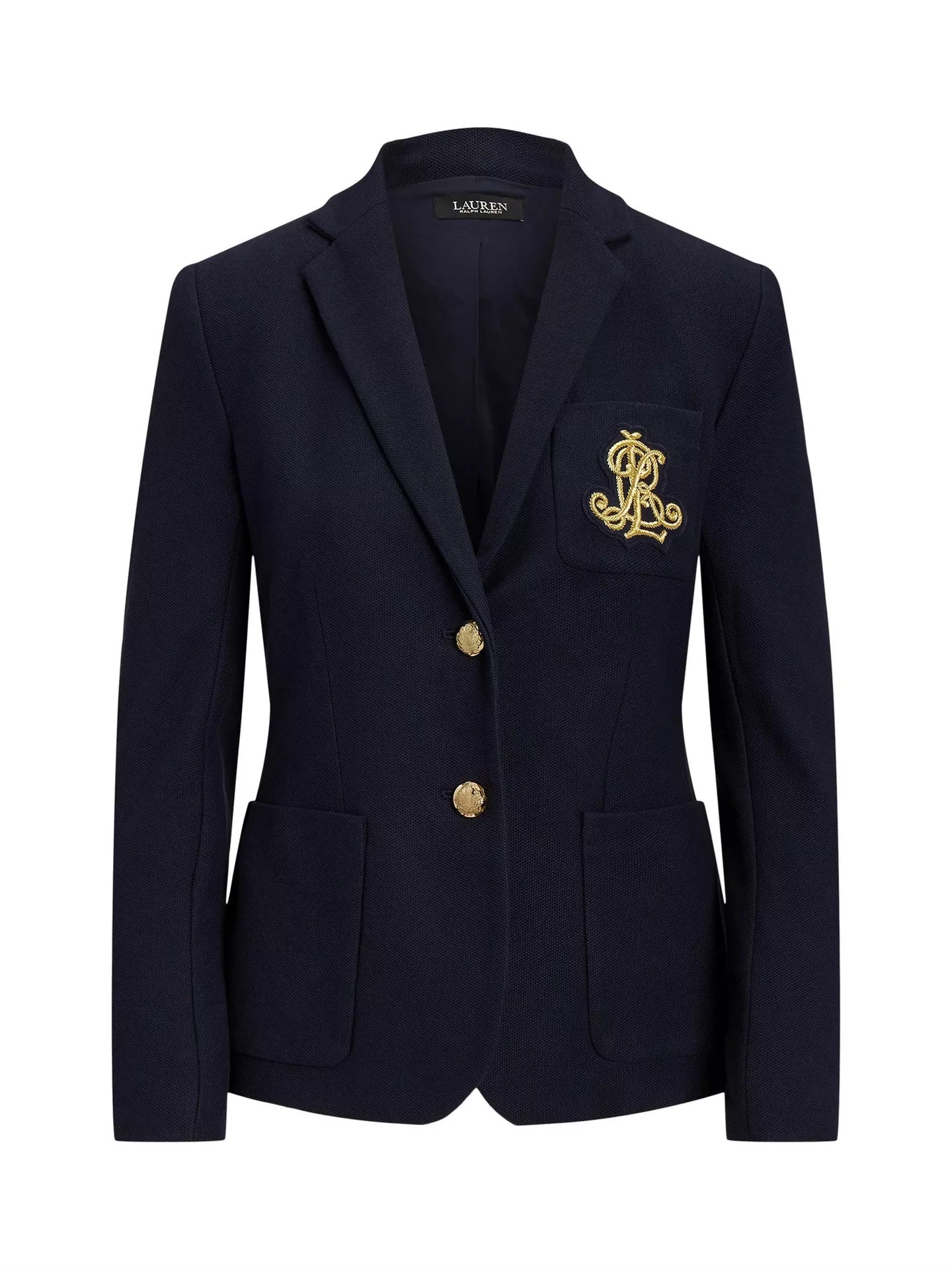 Completing your look in sophisticated style, this chic jacquard blazer by Lauren Ralph Lauren sits at the hips for practical coverage. Styled with a signature bullion patch at the chest and luxurious gold-tone crest-embossed buttons, it's made from a comfortable cotton blend that can be layered over blouses, shirts and knits for a smart finish all year round.