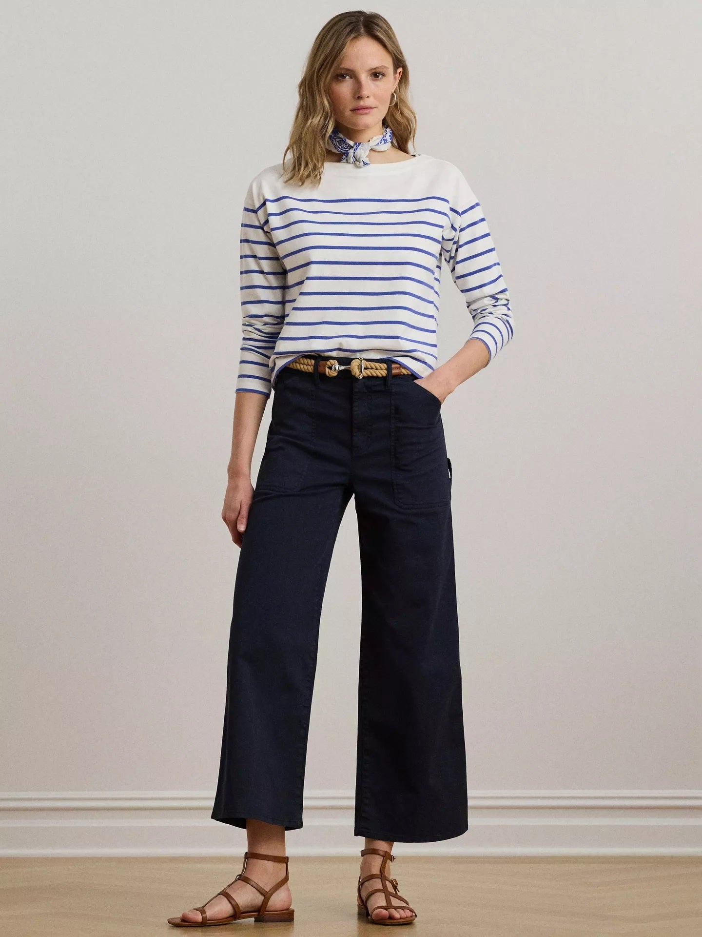 Ralph Lauren Women's Yurshane Stretch Wide Leg Cropped Chinos - Navy - UK 20