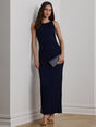 Ralph Lauren Zakaria Beaded Mesh Sleeveless Column Dress - Navy - UK 10