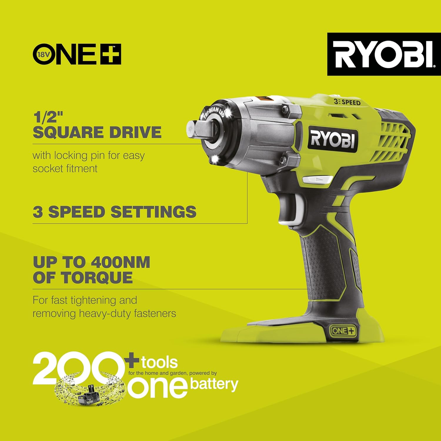 Ryobi ONE+ 3-Speed Cordless Impact Wrench 18V R18IW3-0 Tool Only - Green - Grade A is backordered and will ship as soon as it is back in stock.