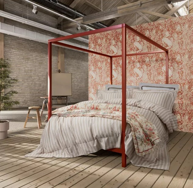 This quilted throw, a classic English bedding accessory, delights in the accented bushel of blooms and adds further poetic Englishness with the box frill edge, and contrast cotton velvet piping. The reverse is a plain fabric, which beautifully juxtaposes the frilled edge.