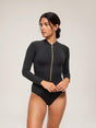 The Seafolly Collective Zip Front Surf Suit is crafted for all day comfort. Complete with long sleeves to help protect you from the sun, this women's surf suit offers a versatile zip front lock with a Seafolly logo trim detail.