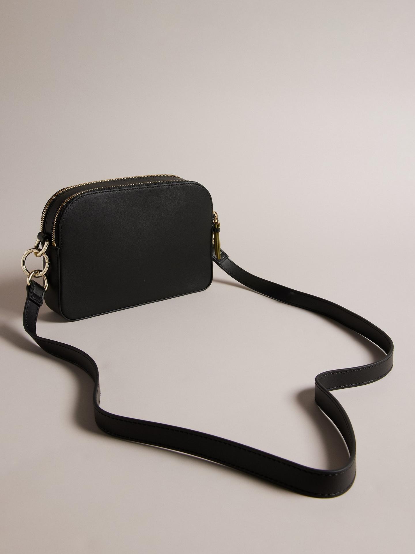 Ted Baker Darcelo Bovine Leather Two Zip Cross Body Plain Camera Bag - Black