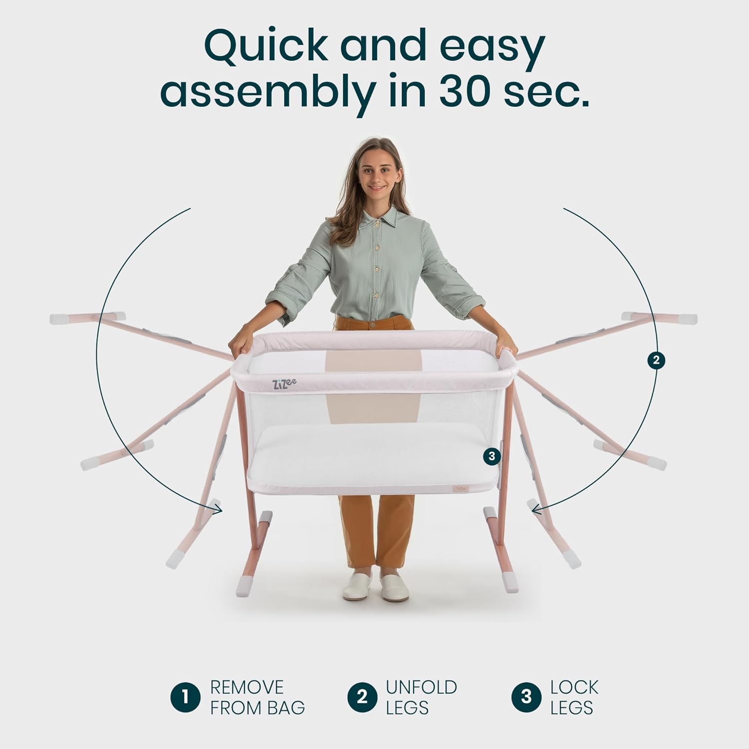 he Tutti Bambini ZiZee Breathable Rocking Crib is a practical choice for parents looking for a safe and comfy spot for their newborn to sleep. Designed for babies from birth up to 6 months, this lightweight and portable crib makes nap time and bedtime a breeze, whether you're at home or away on holiday.